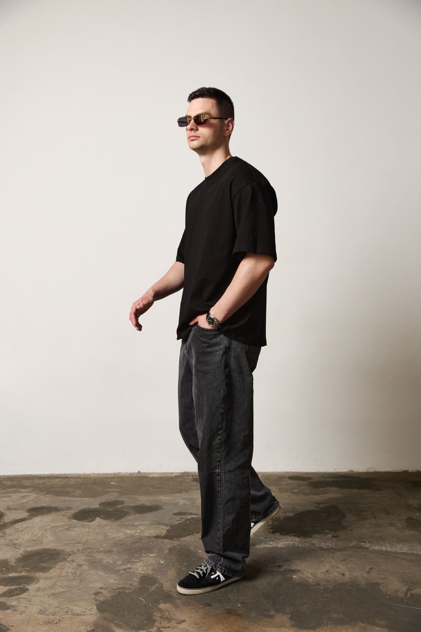 Ласкаво просимо до XSTORE-BRAND - інтернет магазин чоловічої білизни! Ми пропонуємо різноманітний вибір на джинси для чоловіків, від основних частин гардероба до яскравих елементів, що підкреслюють вашу індивідуальність. У нашій колекції ви знайдете як жіночі костюми, так і костюм літній чоловічий. Наші клієнти можуть розраховувати на вигідні пропозиції, акції та приємні ціни. Ми гарантуємо високу якість кожного товару, щоб він служив вам довго і зберігав свій бездоганний вигляд.Футболка оверсайз чоловіча чорна в магазині чоловічого та жіночого "XSTORE-BRAND"