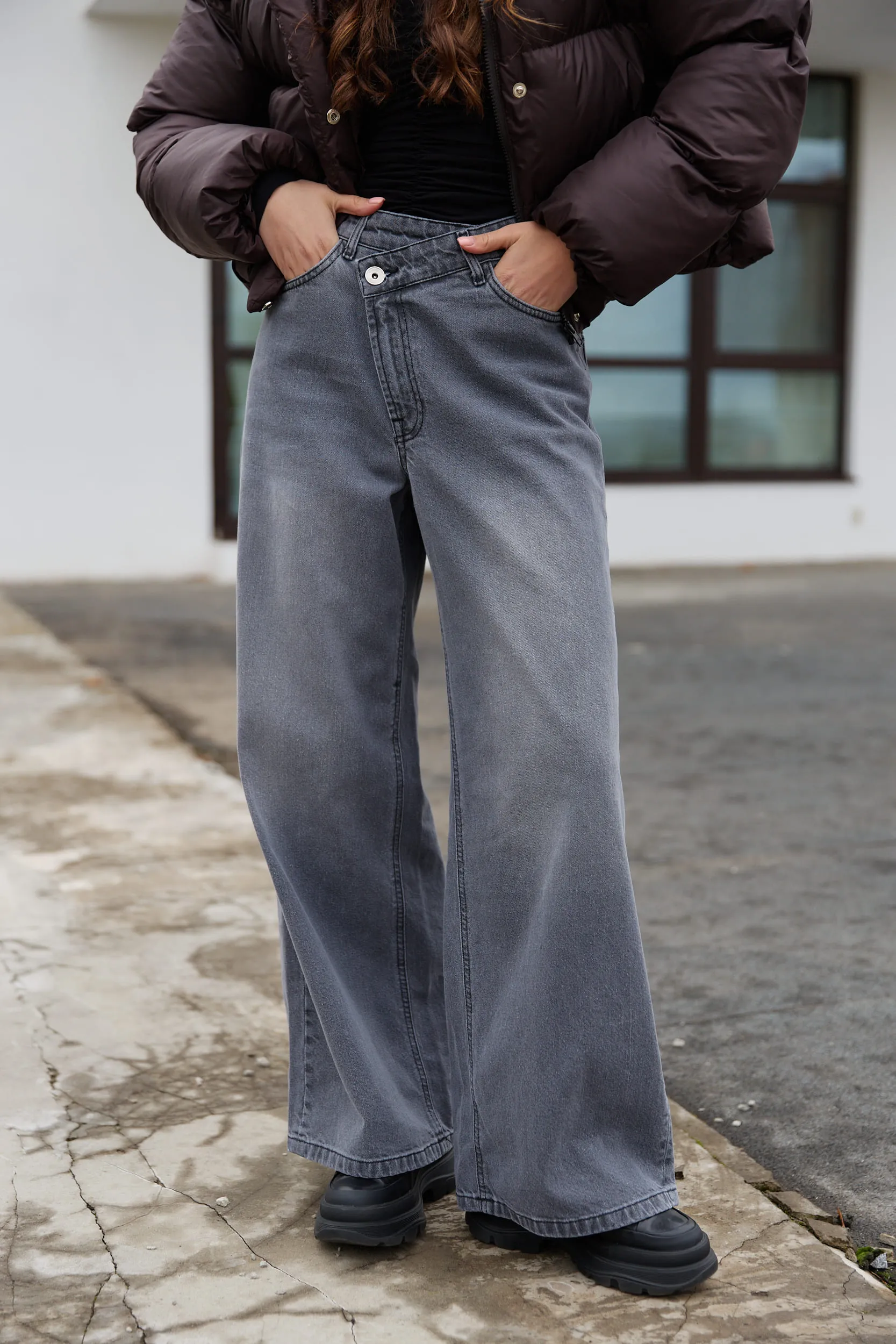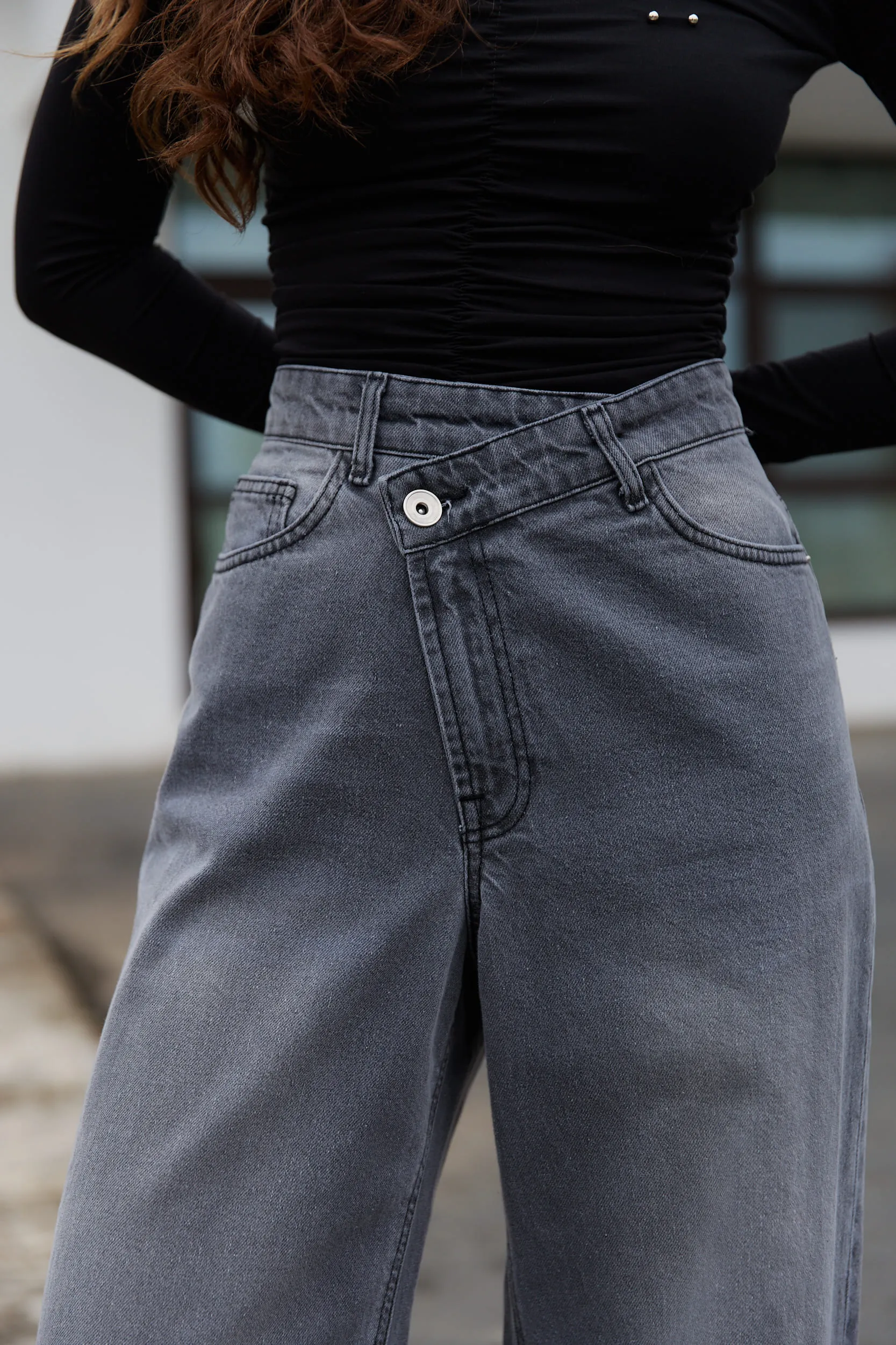 Джинси зі спущеним поясом жіночі графіт за вигідними цінами.
