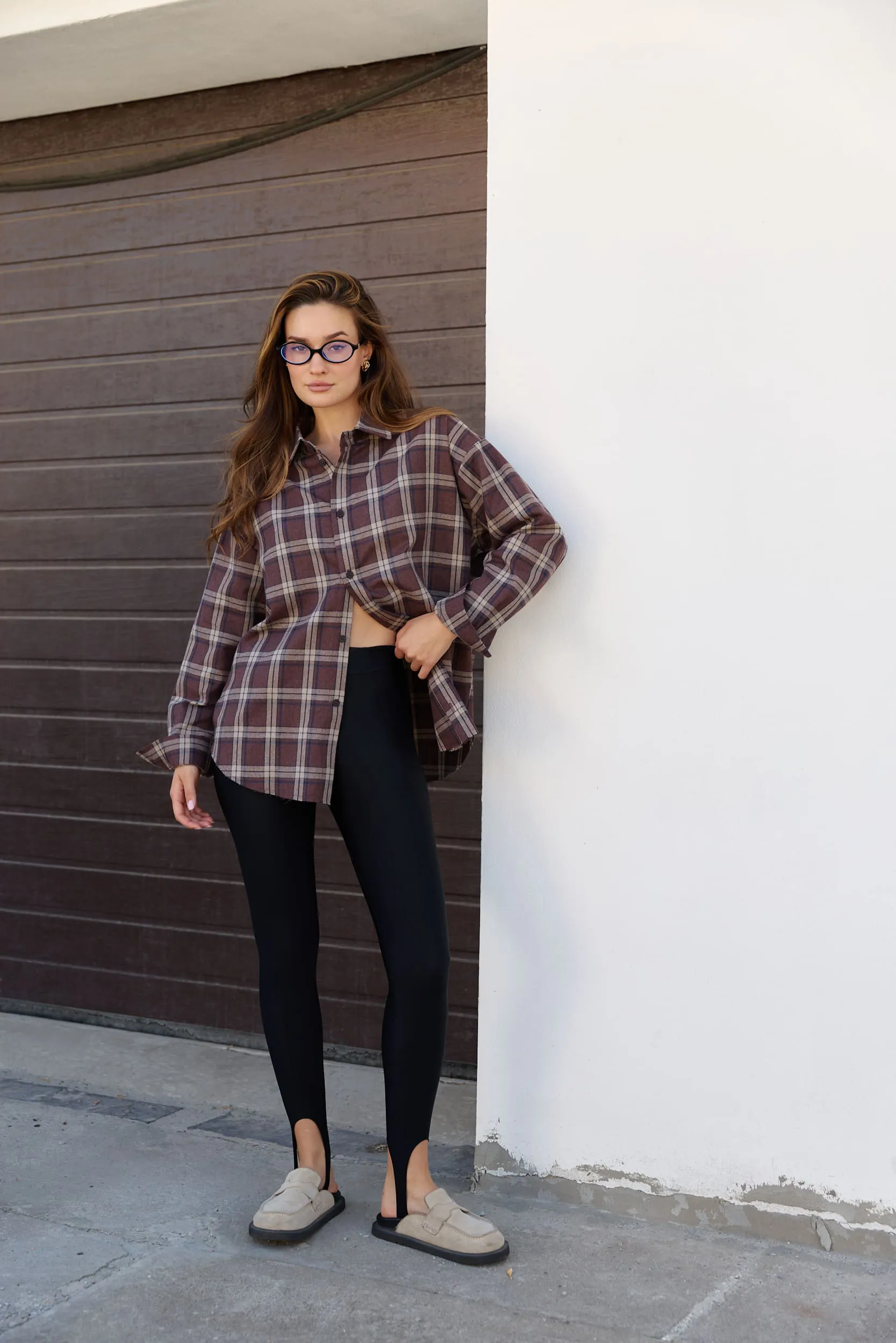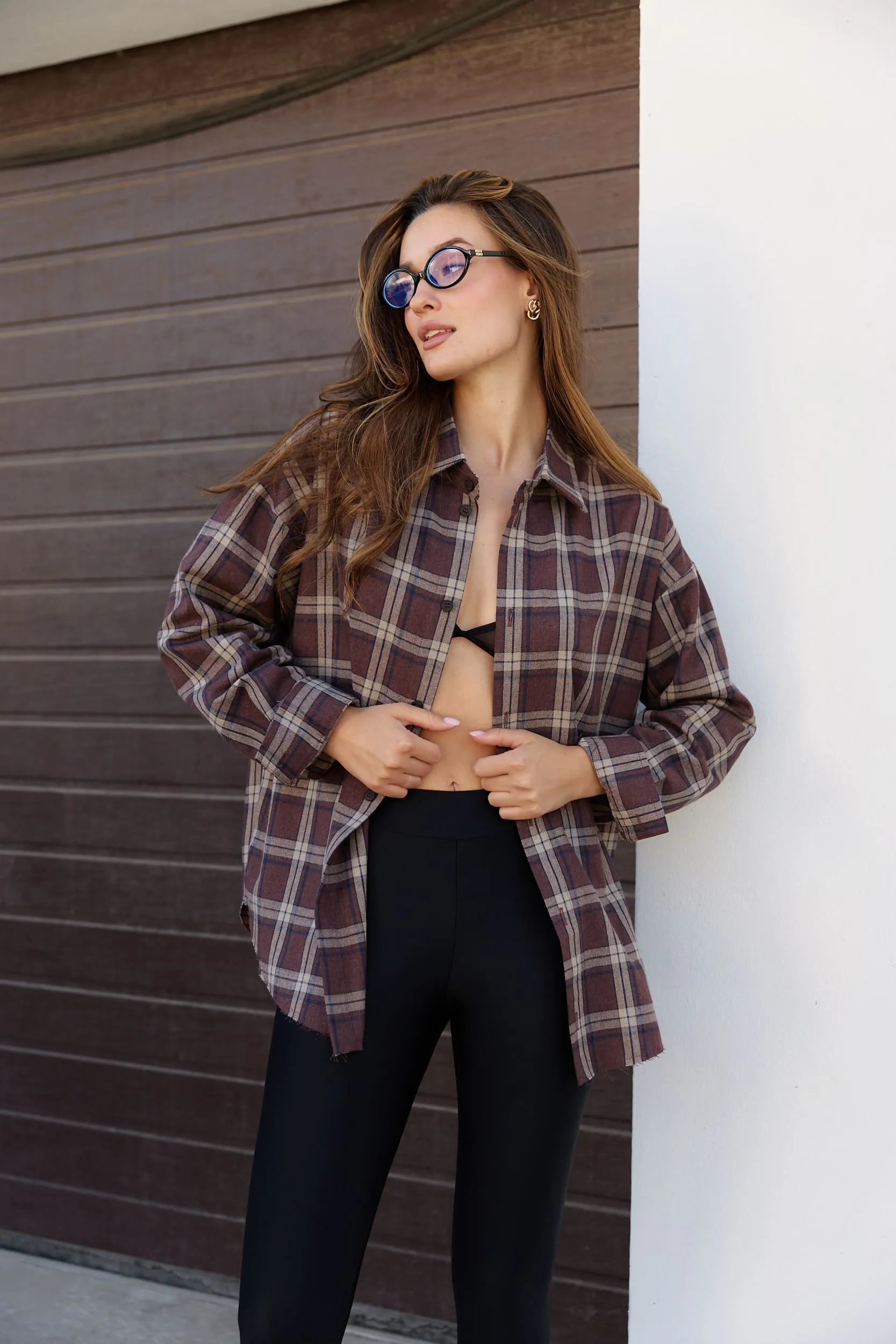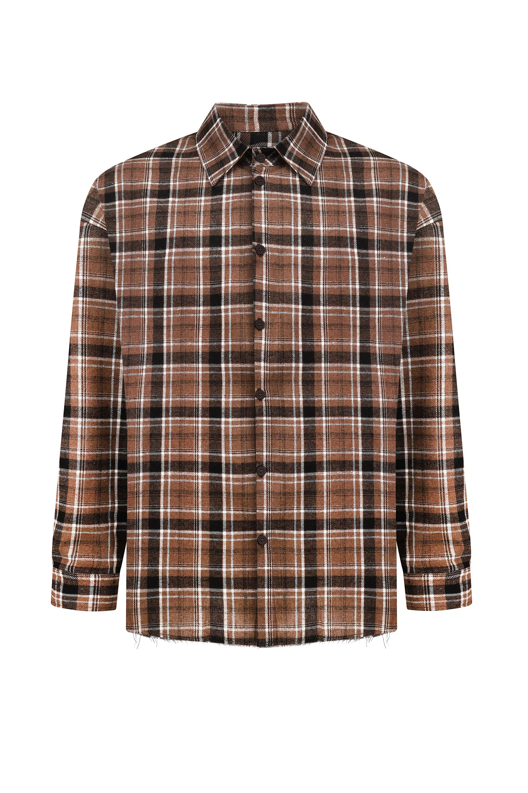Картата сорочка жіноча у клітинку з необробленим краєм шоколад за вигідними цінами.
