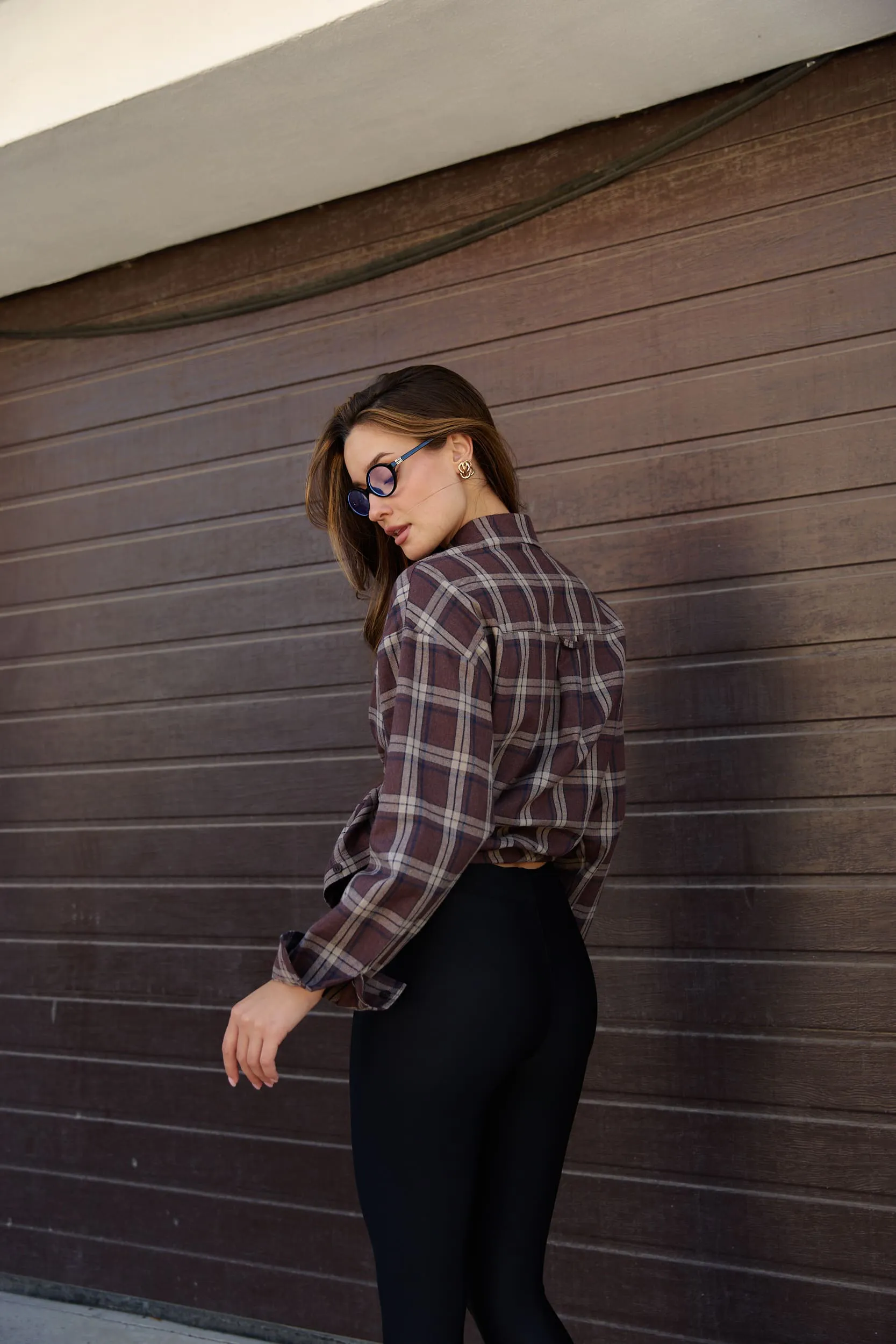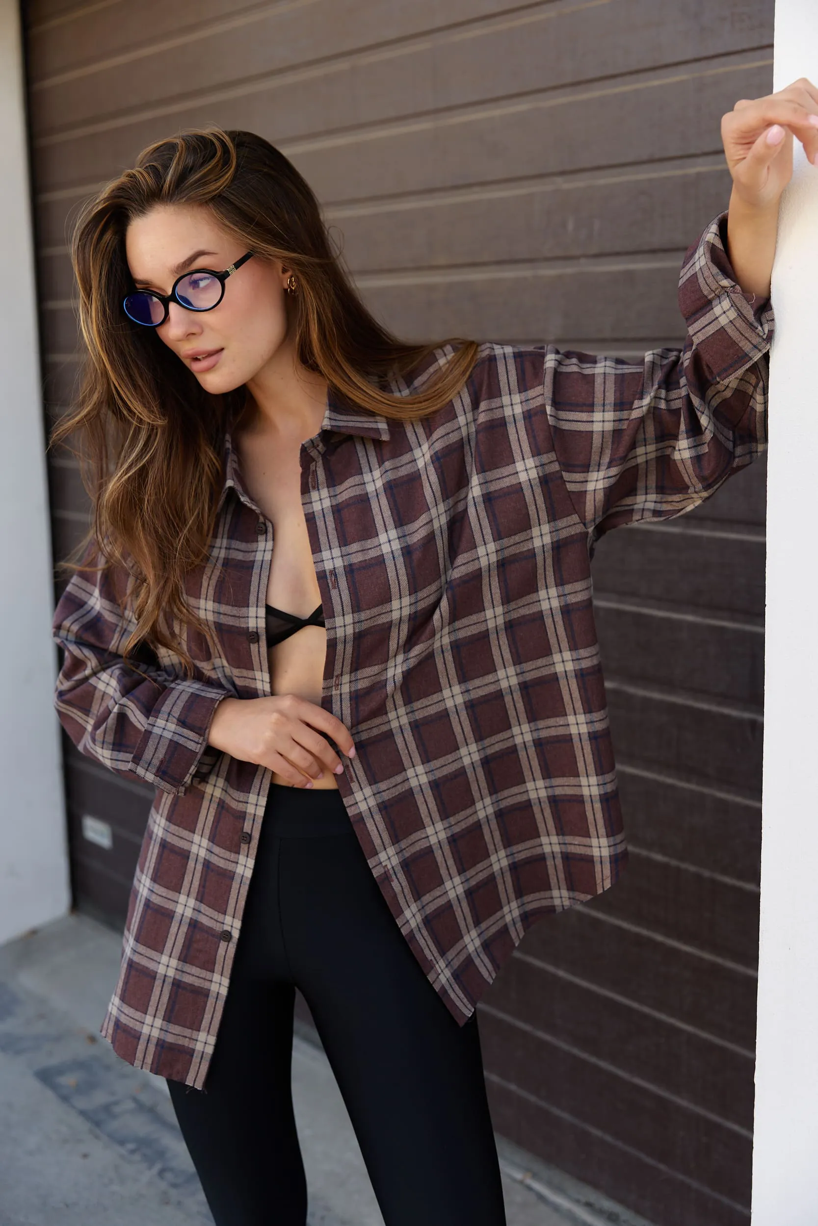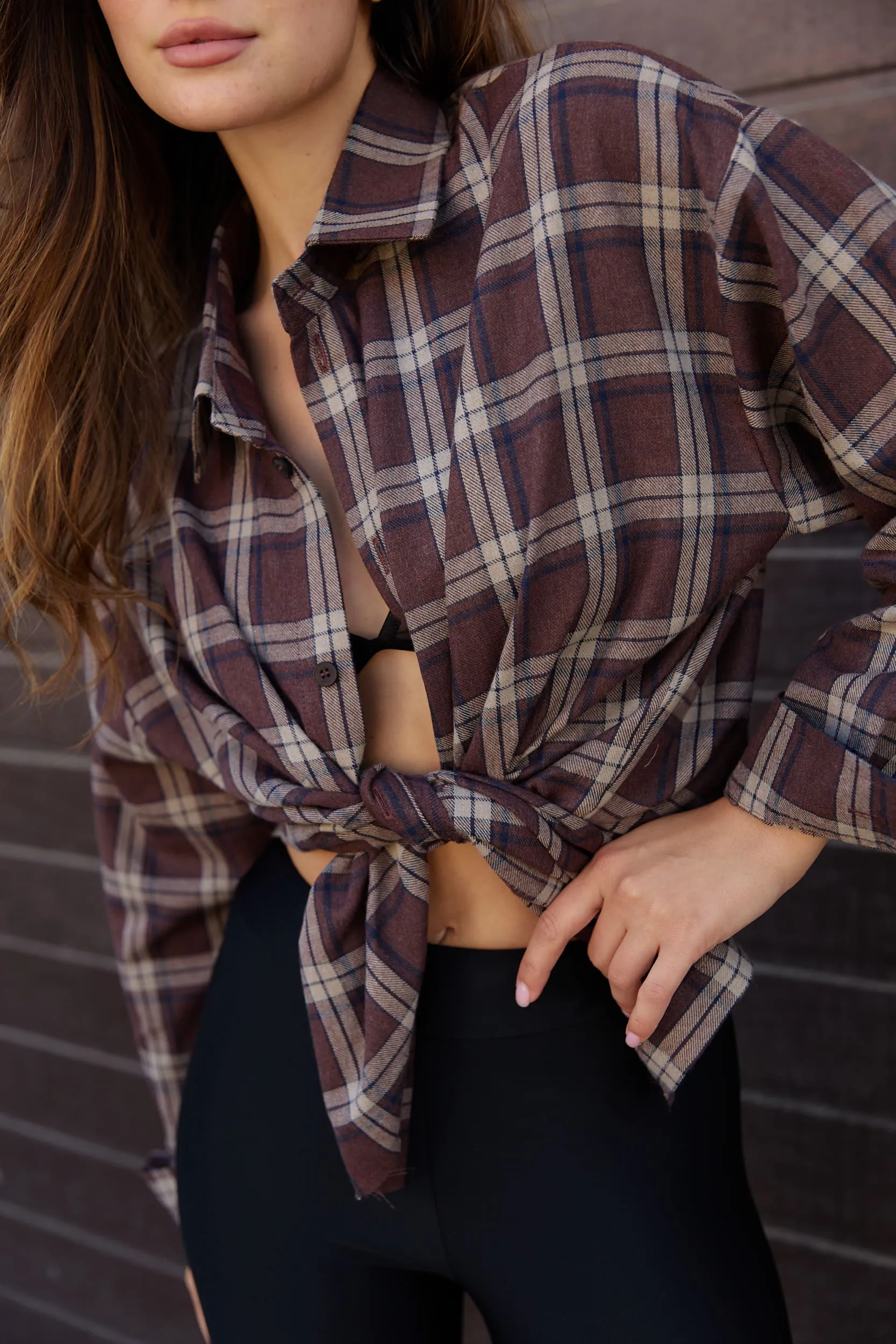 Картата сорочка жіноча у клітинку з необробленим краєм шоколад за вигідними цінами.