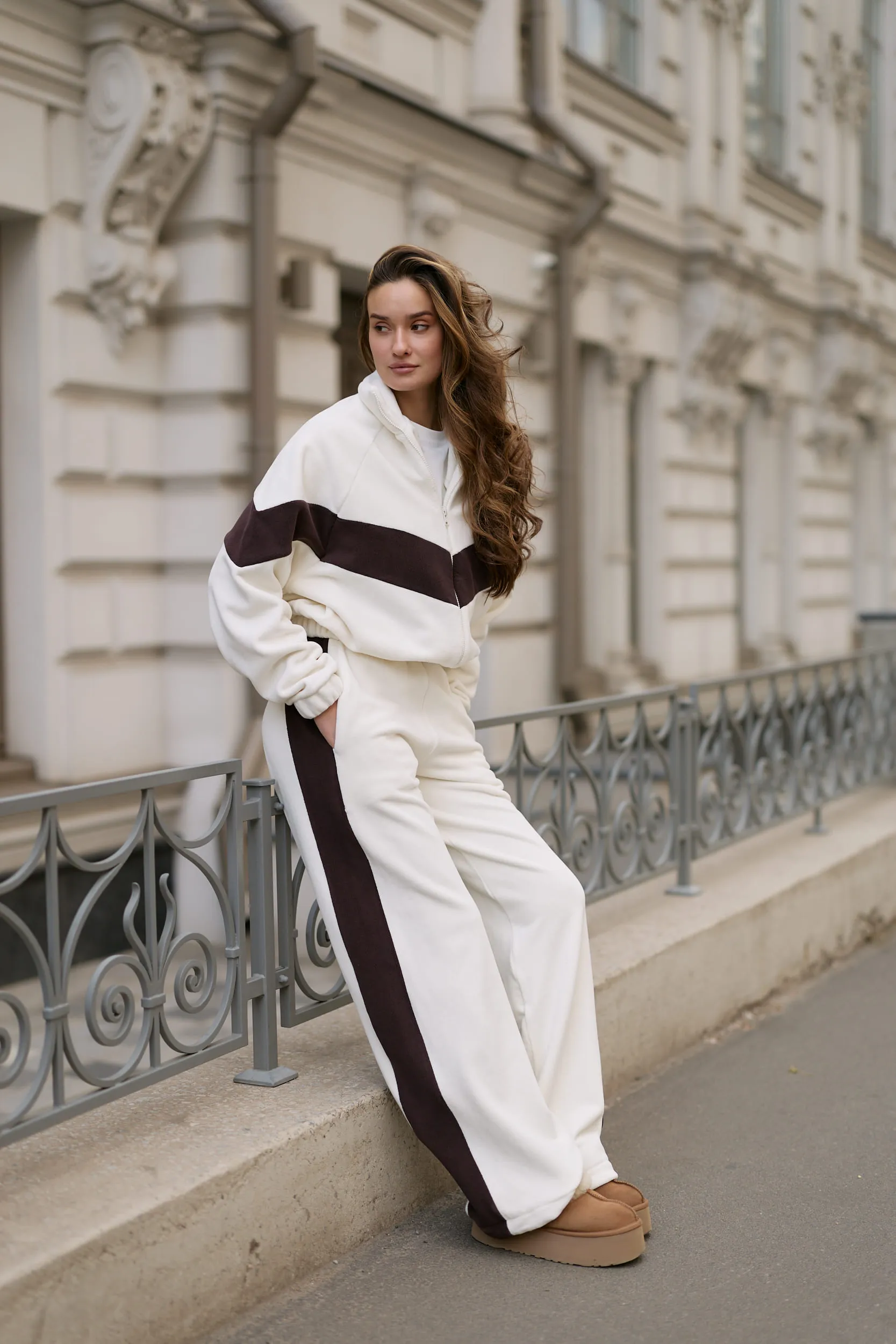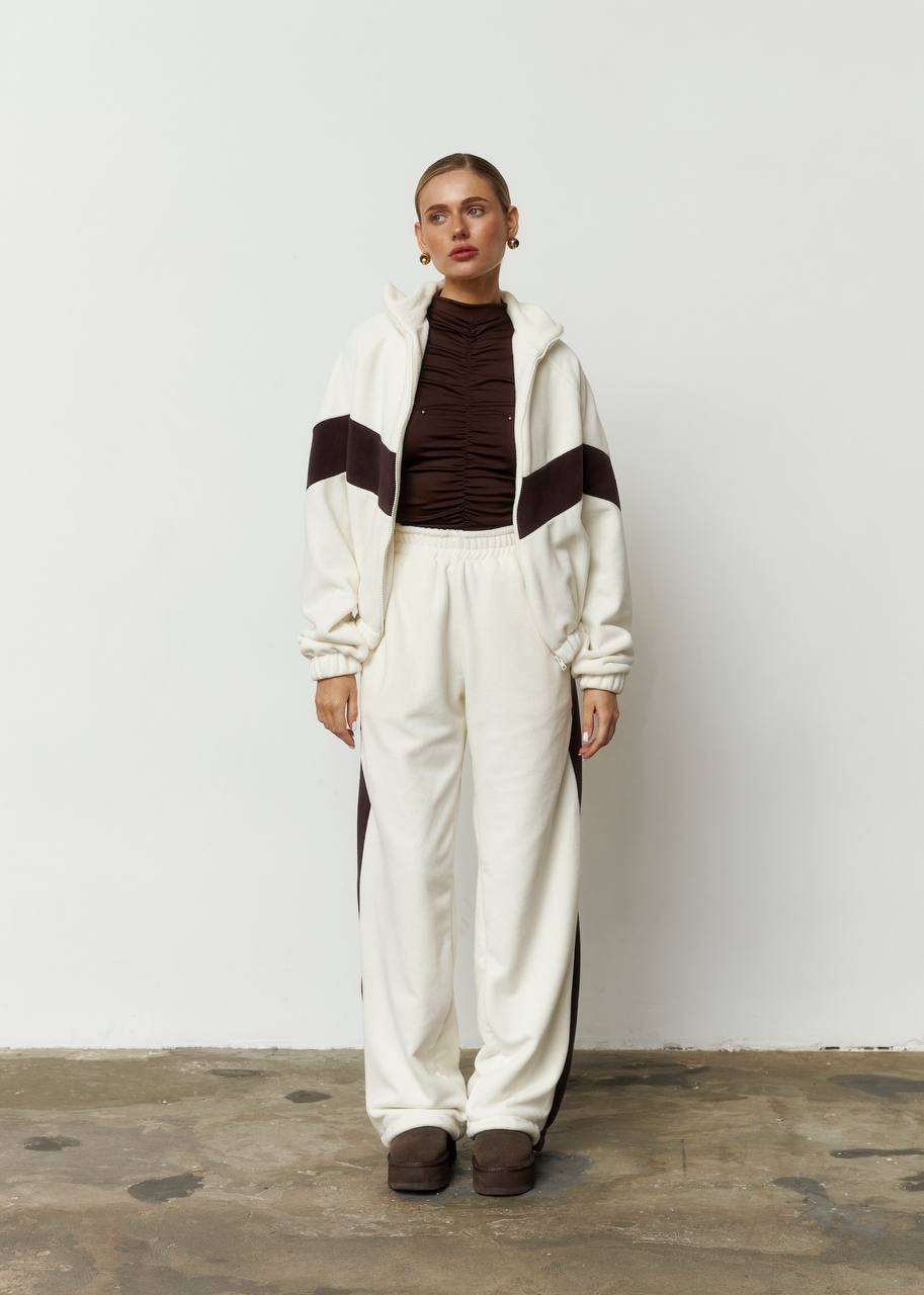 Ласкаво просимо до XSTORE-BRAND - інтернет магазин одягу жіночого! Ми пропонуємо широкий асортимент на теплі жіночі костюми, від базових елементів гардероба до яскравих акцентів, що підкреслюють стиль і індивідуальність. У нашому магазині ви знайдете як штани для жінок, так і теплий чоловічий костюм. Наші клієнти можуть скористатися вигідними акціями, пропозиціями та доступними цінами. Ми гарантуємо якість усіх товарів, щоб вони служили вам тривалий час і не втрачали свого вигляду.Костюм лампас з полар флісу жіночий молочний в інтернет-магазині одягу "XSTORE-BRAND"