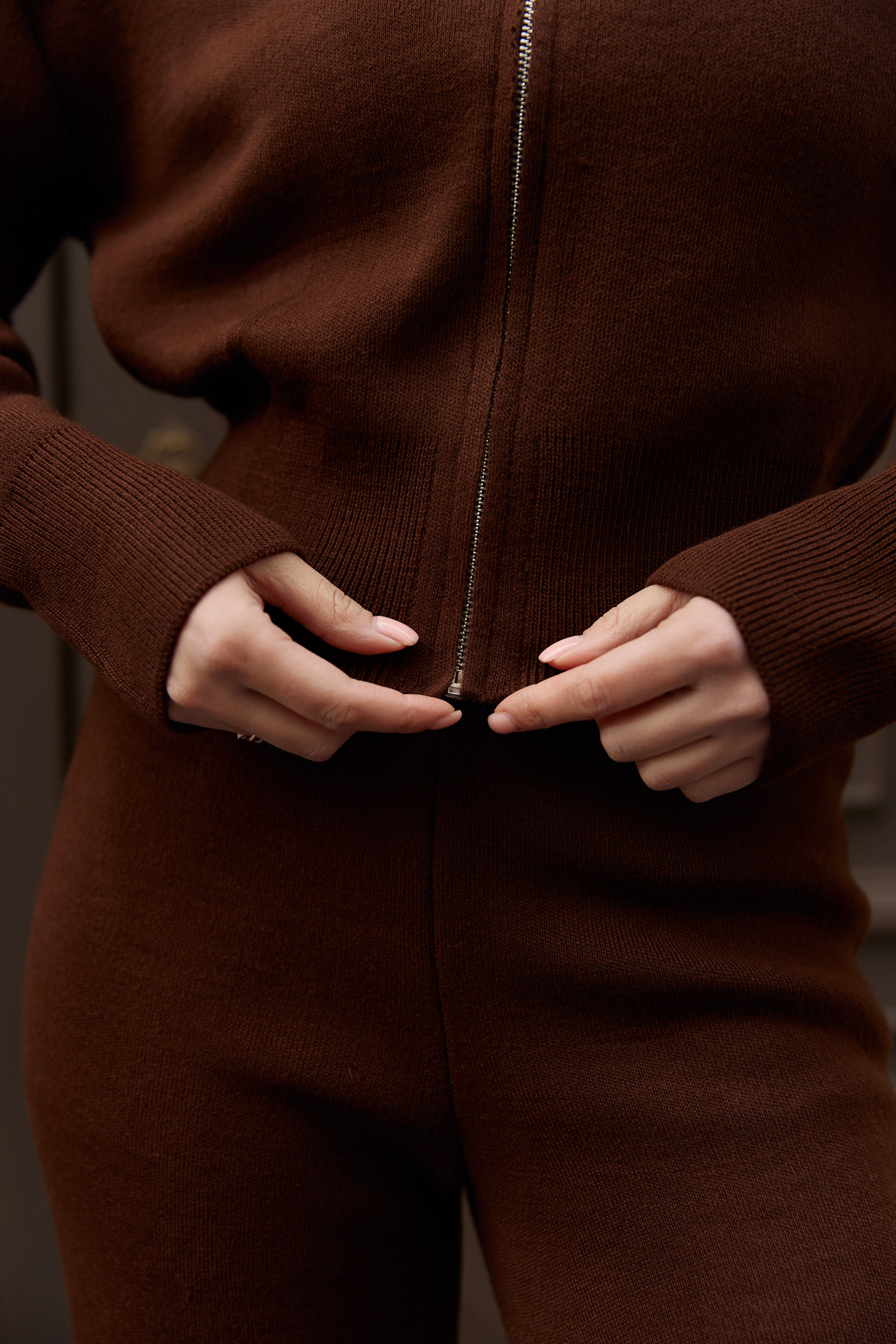 Костюм вʼязаний на блискавці жіночий шоколад за вигідними цінами.