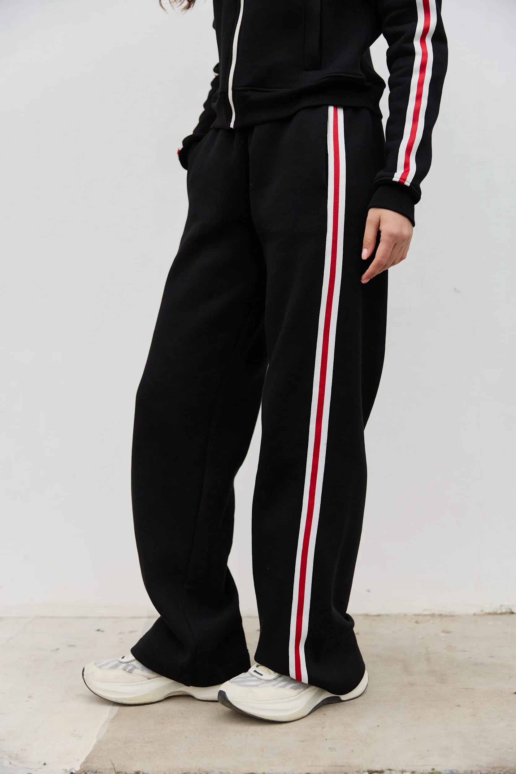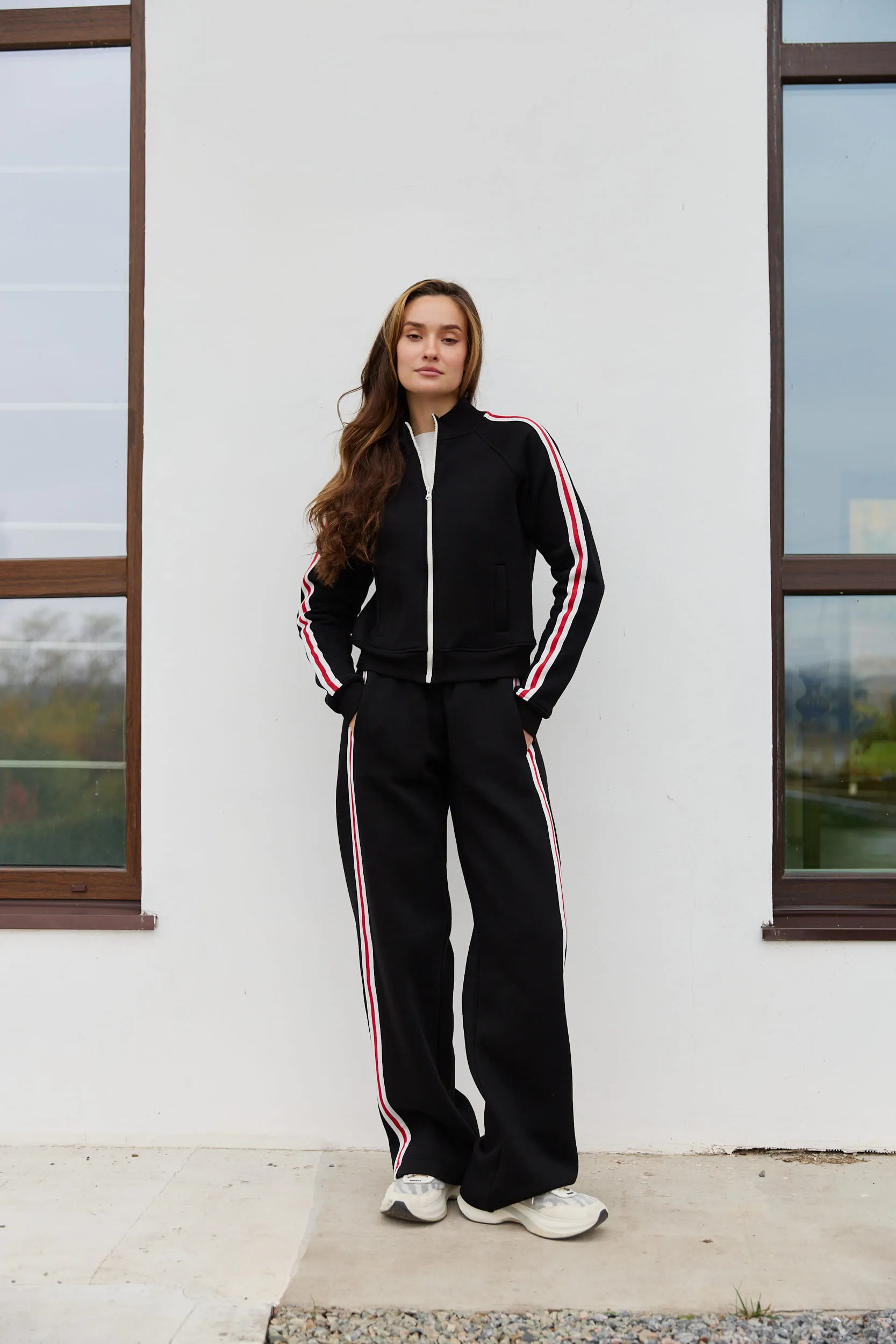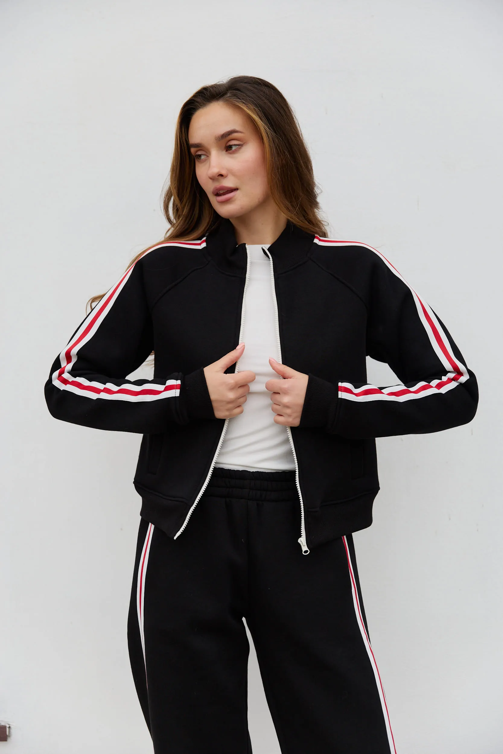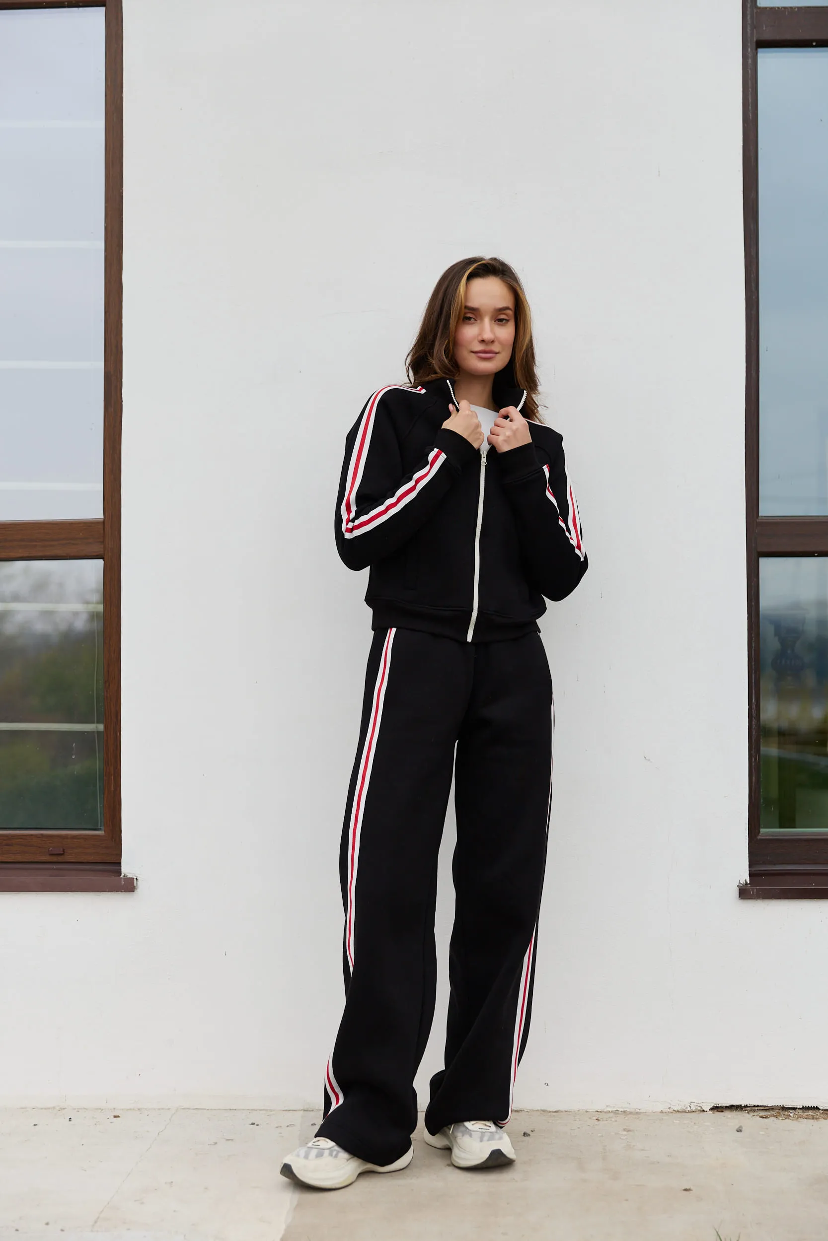 Костюм з кантом на флісі жіночий чорний за вигідними цінами.