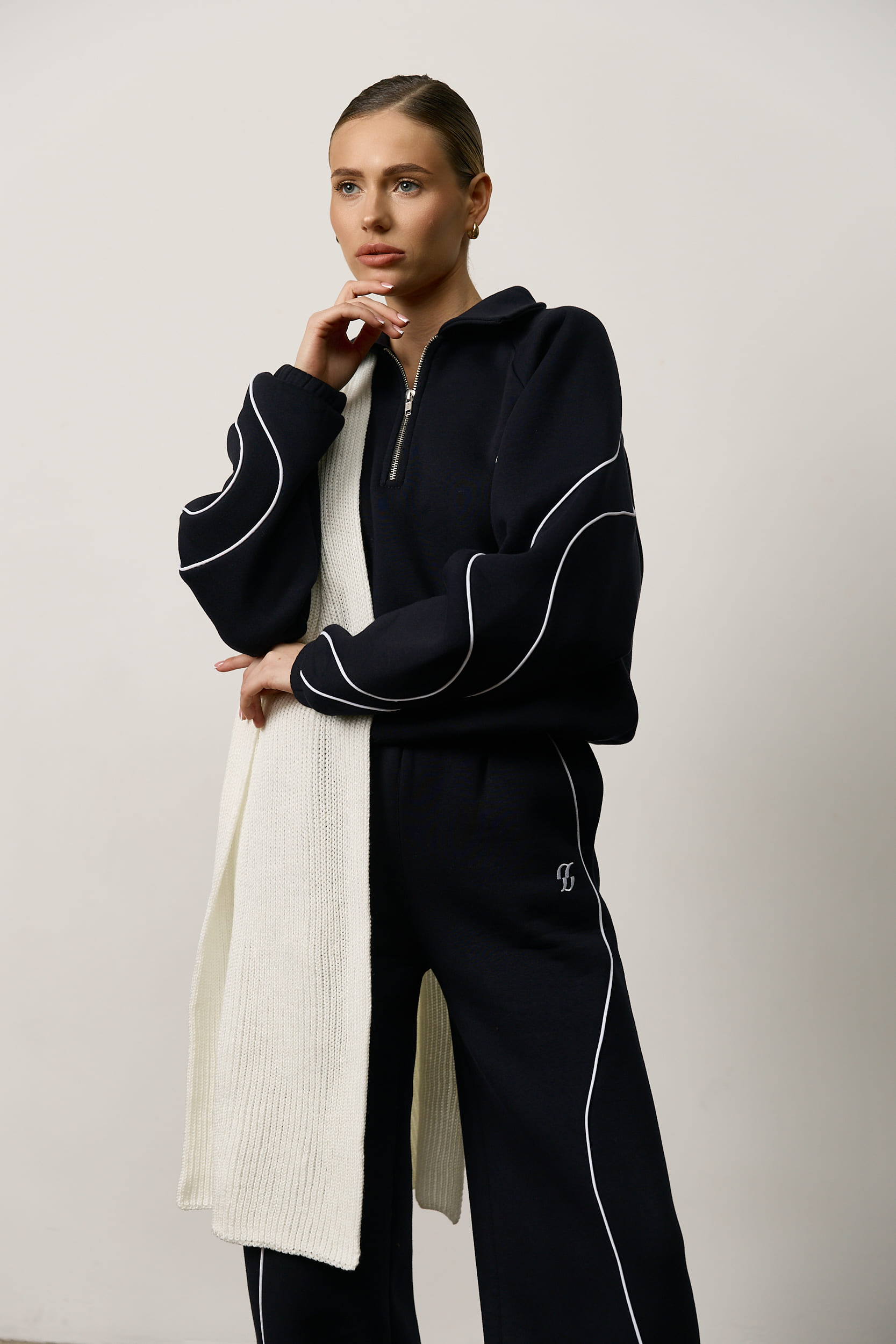 Вітаємо вас в XSTORE-BRAND - магазин чоловічої білизни! У нас широкий асортимент продукції на топ, від основних елементів до яскравих деталей, що підкреслюють ваш особливий стиль. У нашому каталозі ви знайдете як лонгслів жіночий, так і чоловічі костюми теплі. Наші клієнти можуть розраховувати на вигідні пропозиції, акції та приємні ціни. Ми гарантуємо якість усіх товарів, щоб вони служили вам тривалий час і не втрачали свого вигляду.Костюм жіночий з хвилястим лампасом темно-синій в магазині чоловічого та жіночого "XSTORE-BRAND"