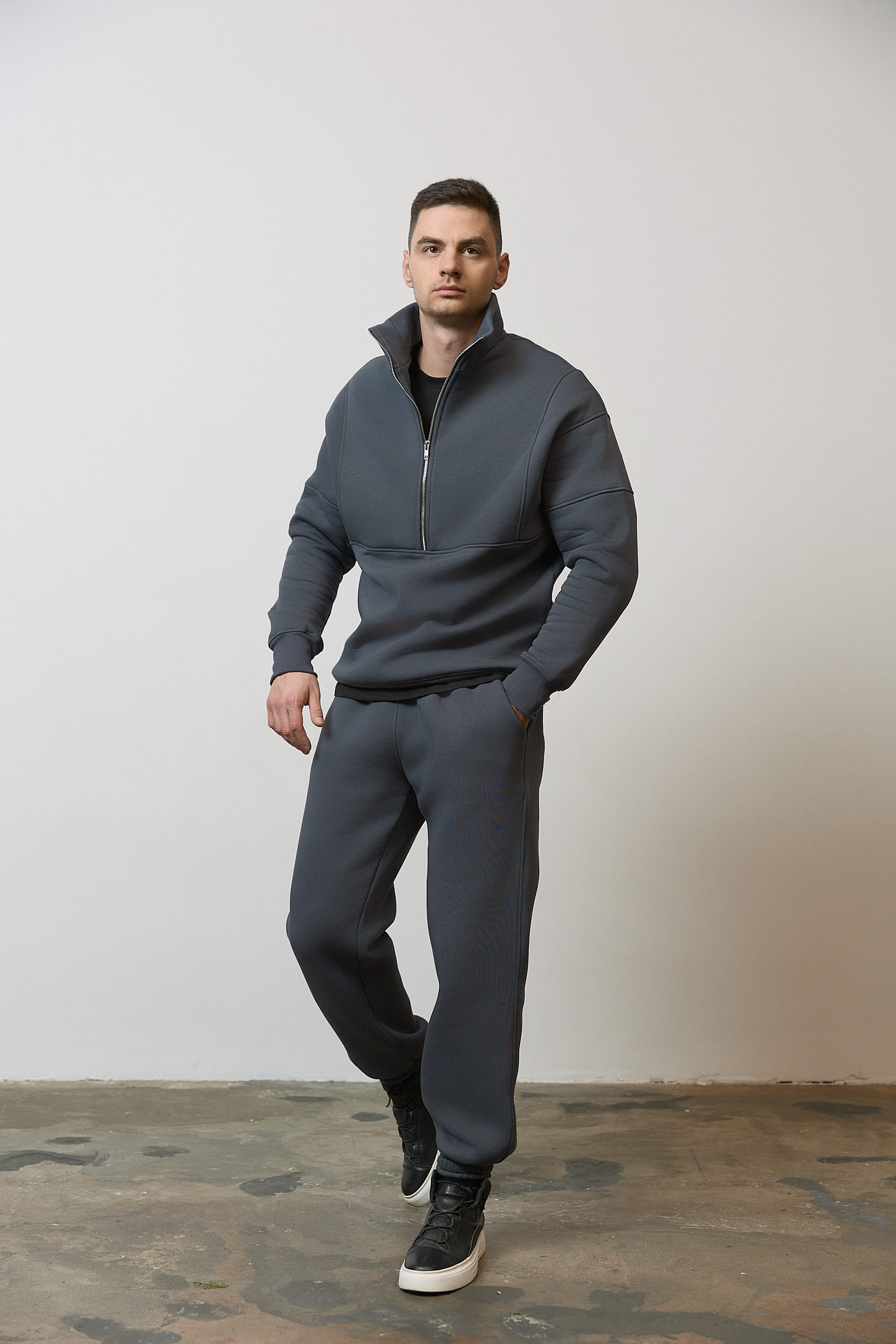 Вітаємо вас в XSTORE-BRAND - магазин одягу для чоловіків! Ми пропонуємо широкий асортимент на чоловіча нижня білизна, від основних частин гардероба до яскравих елементів, що підкреслюють вашу індивідуальність. Серед наших товарів ви знайдете як. жіночий лонгслів, так і нижня білизна для чоловіків. Наші клієнти можуть скористатися вигідними акціями, пропозиціями та доступними цінами. Ми гарантуємо якість усіх товарів, щоб вони служили вам тривалий час і не втрачали свого вигляду.Костюм зі стійкою з флісу чоловічий графіт в магазині чоловічого та жіночого "XSTORE-BRAND"