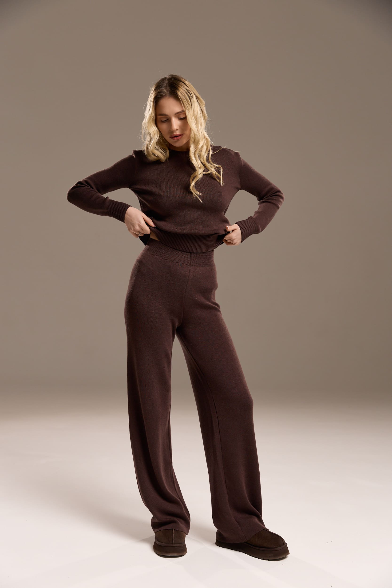 Костюм вʼязаний зі штанами шоколад за вигідними цінами.