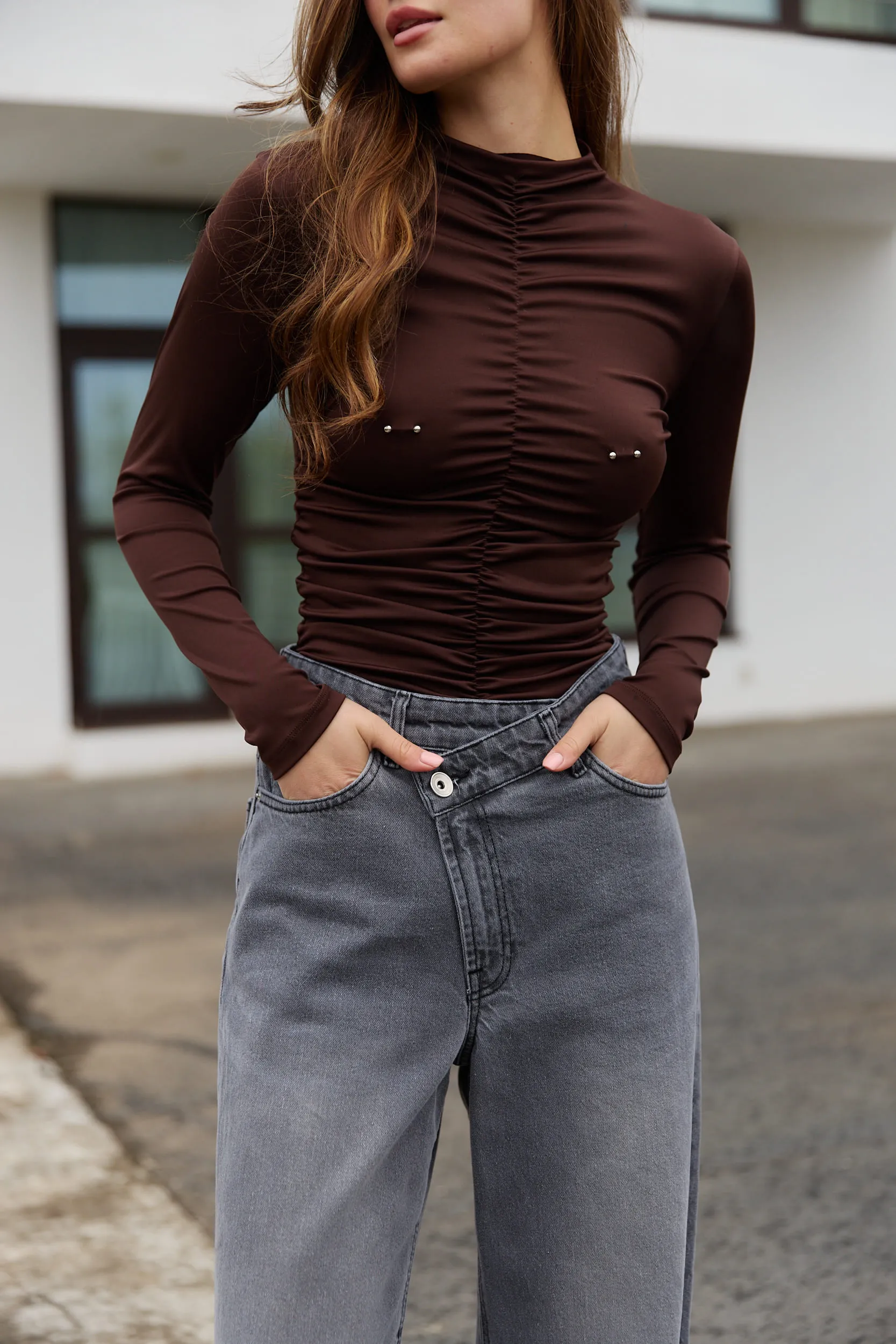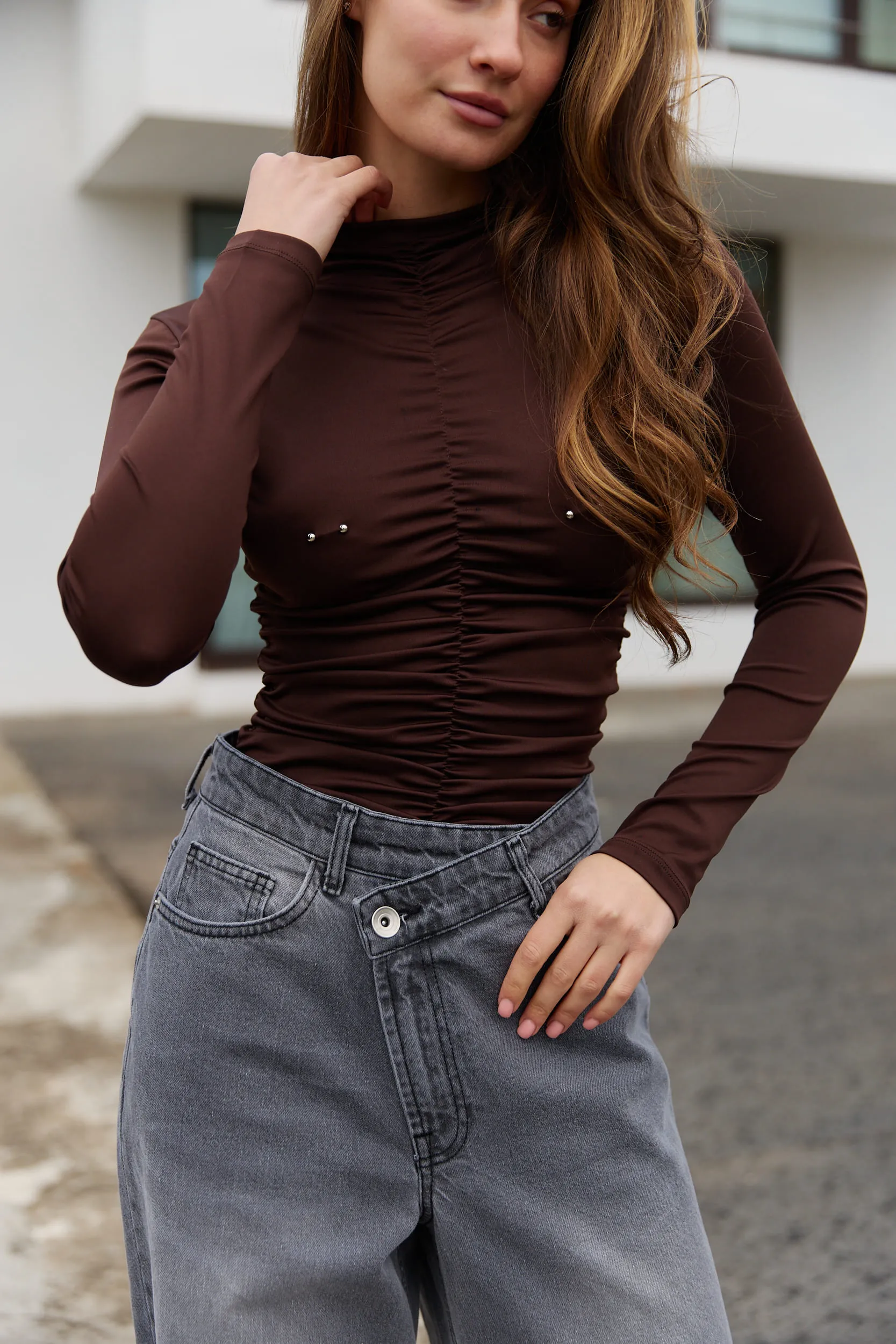 Лонгслів з пірсингом шоколад за вигідними цінами.