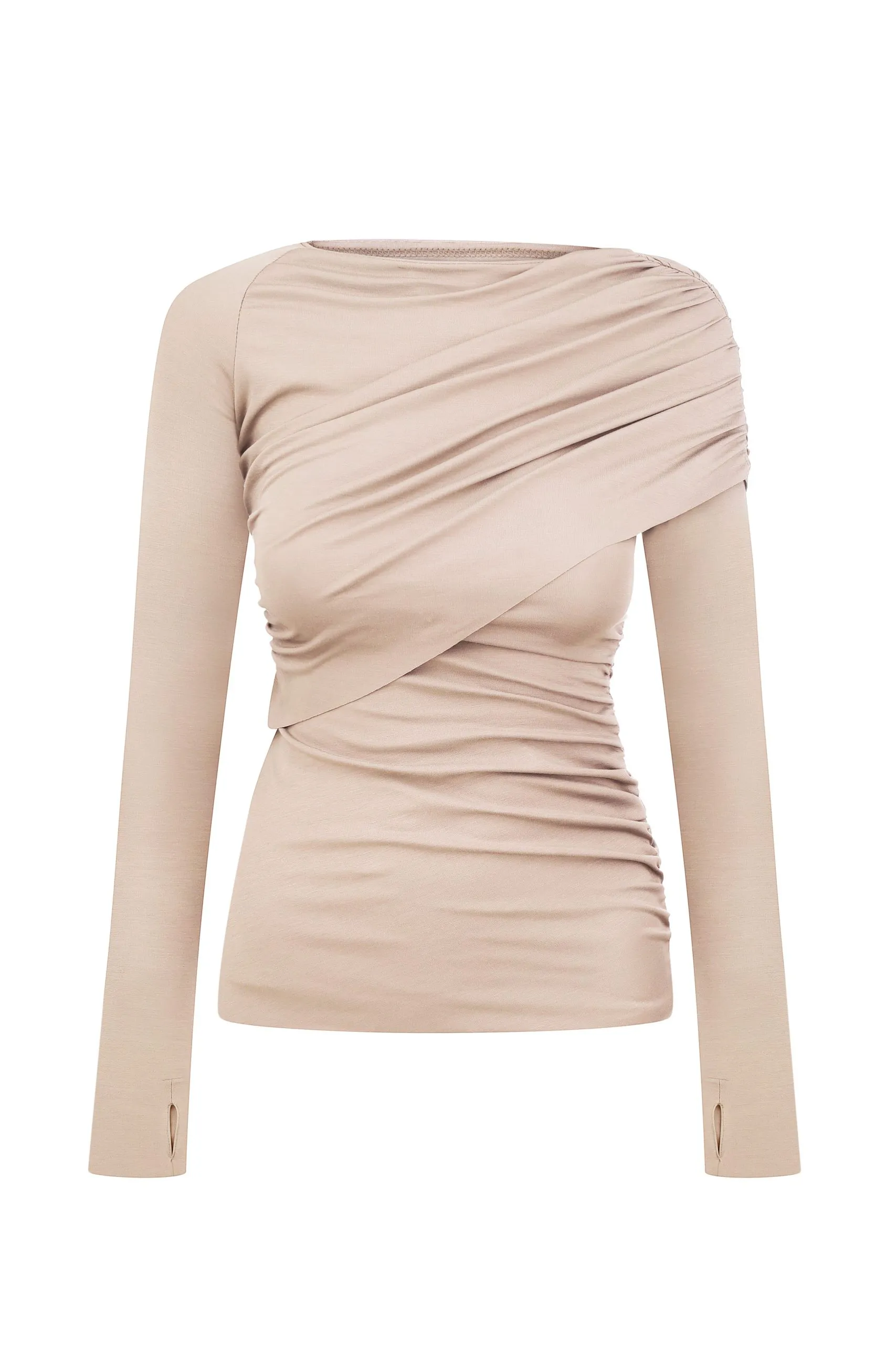 Лонгслів skims зі зборкою на плечі жіночий беж за вигідними цінами.