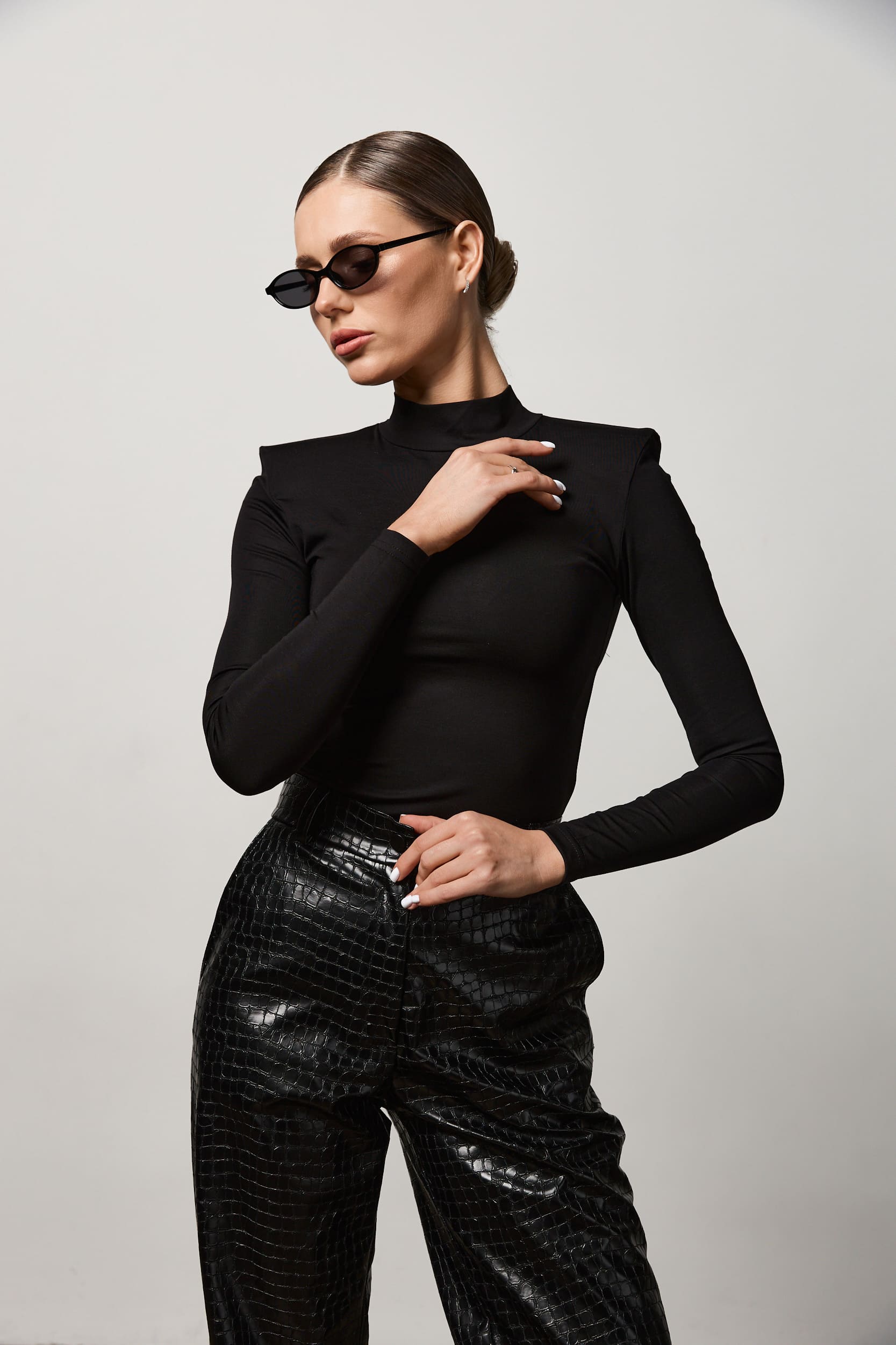 Лонгслів з акцентними плечима чорний за найкращими цінами.