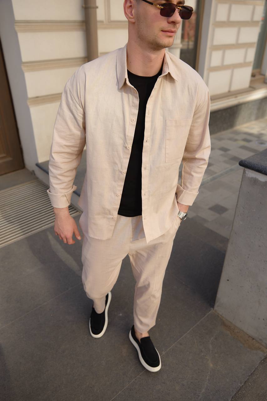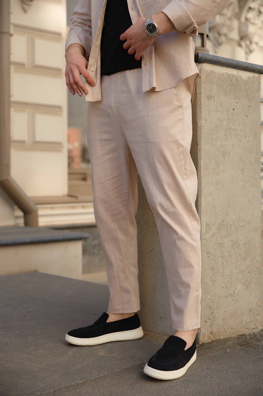 Вітаємо вас в XSTORE-BRAND - інтернет магазин одягу! У нас широкий асортимент продукції на жіночі літні комплекти, від основних частин гардероба до яскравих елементів, що підкреслюють вашу індивідуальність. У нашому магазині ви знайдете як теплі жіночі костюми, так і літній чоловічий костюм. Наші клієнти можуть розраховувати на вигідні пропозиції, акції та приємні ціни. Ми гарантуємо високу якість кожного товару, щоб він служив вам довго і зберігав свій бездоганний вигляд.Штани чоловічі з льону бежеві в магазині чоловічого та жіночого "XSTORE-BRAND"