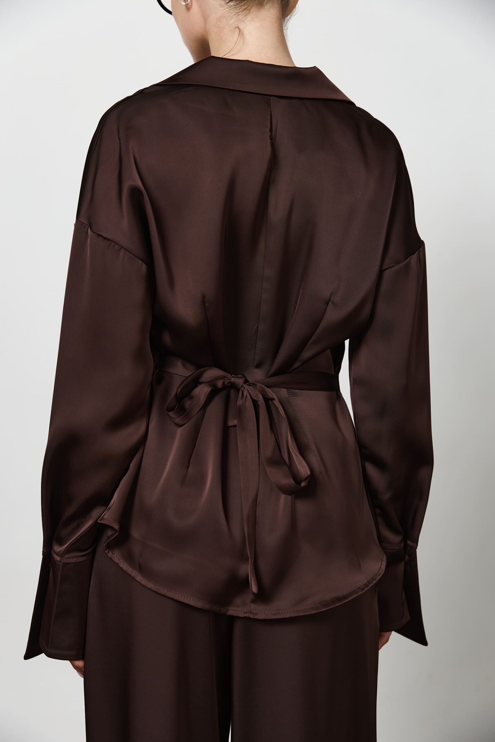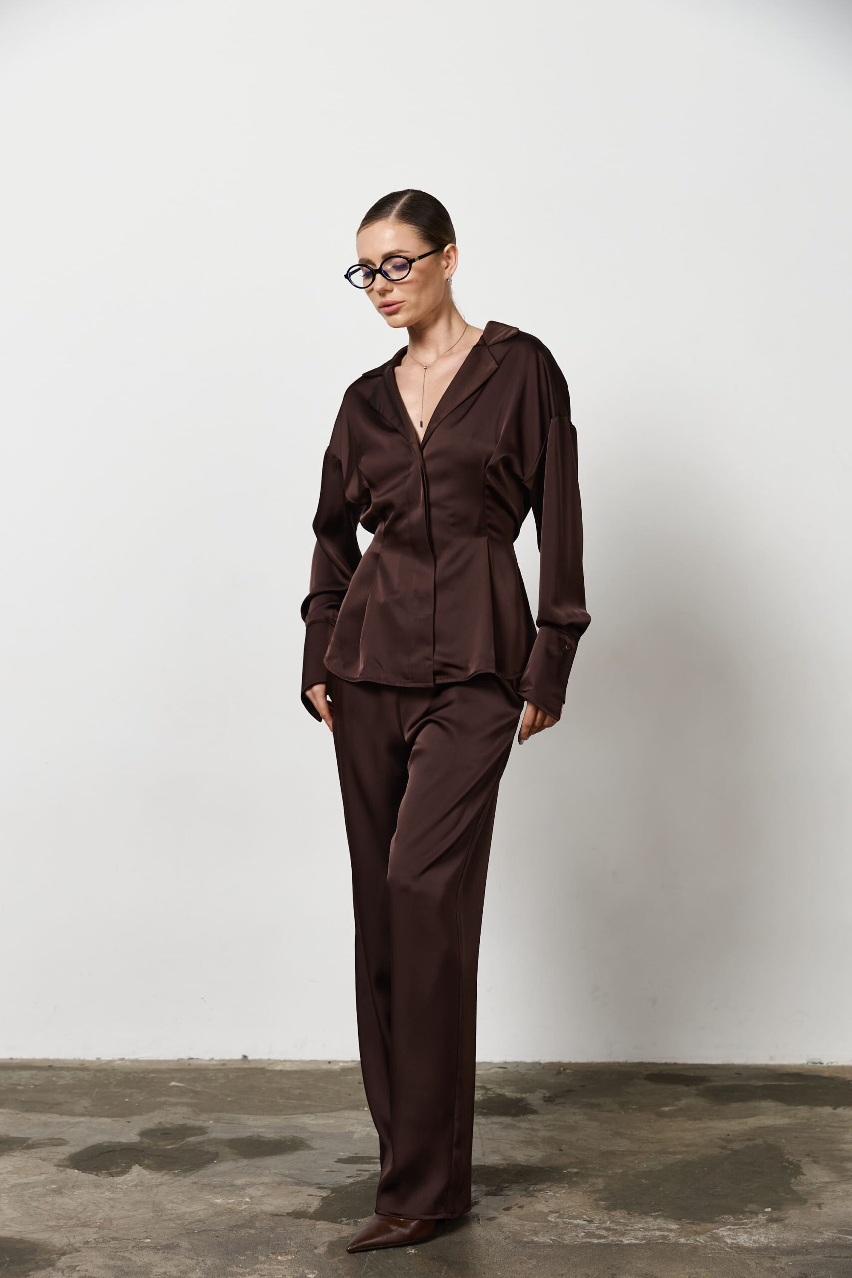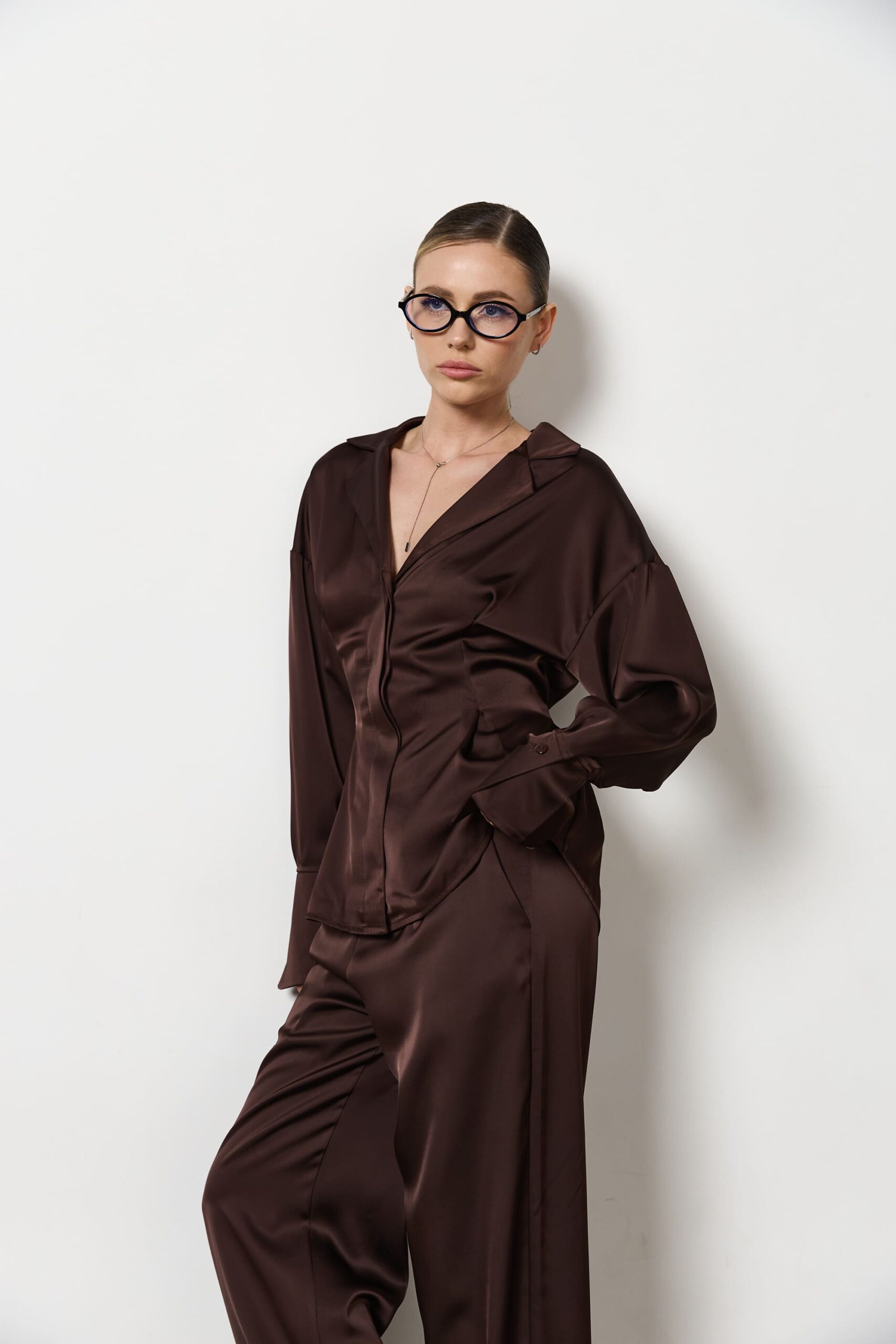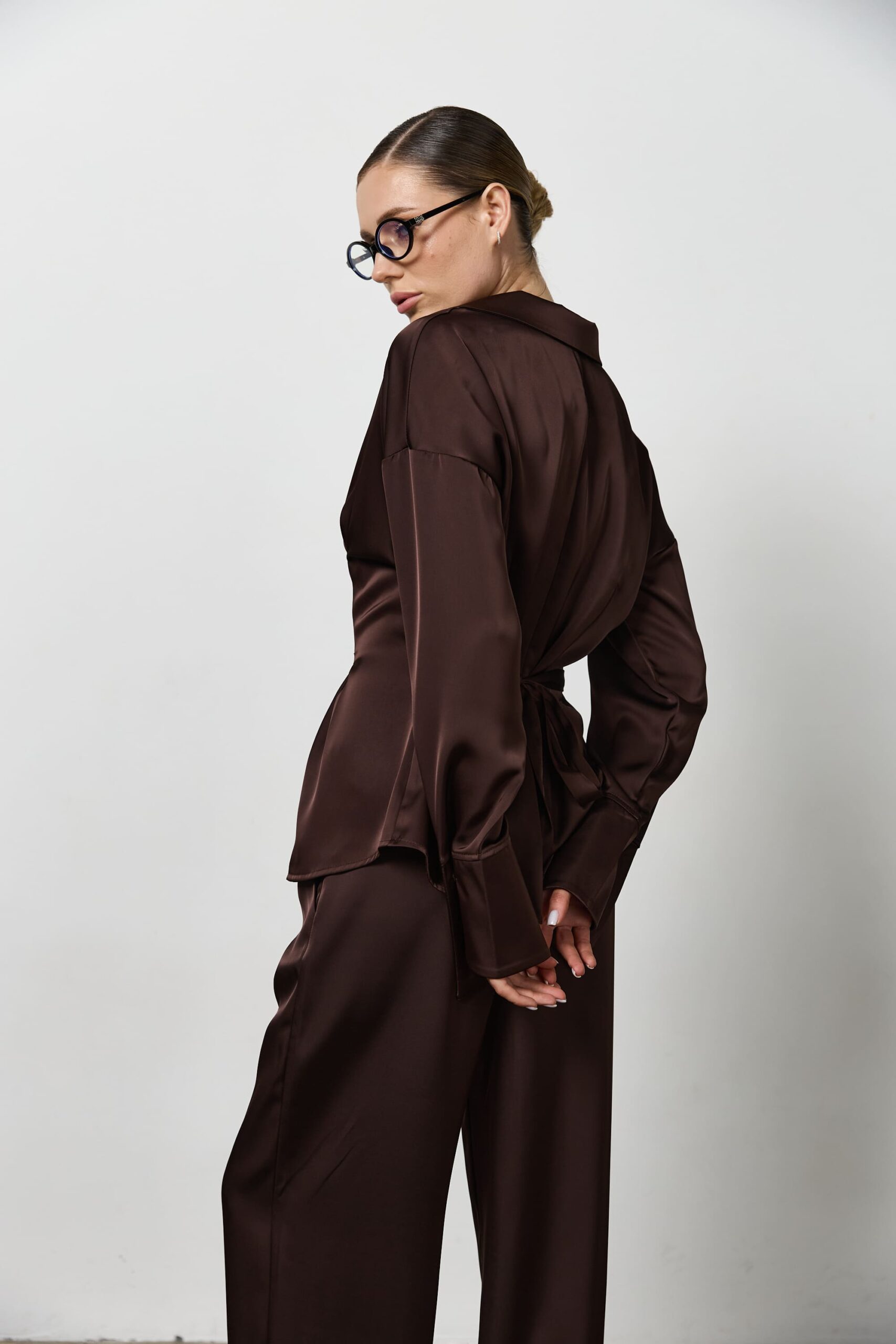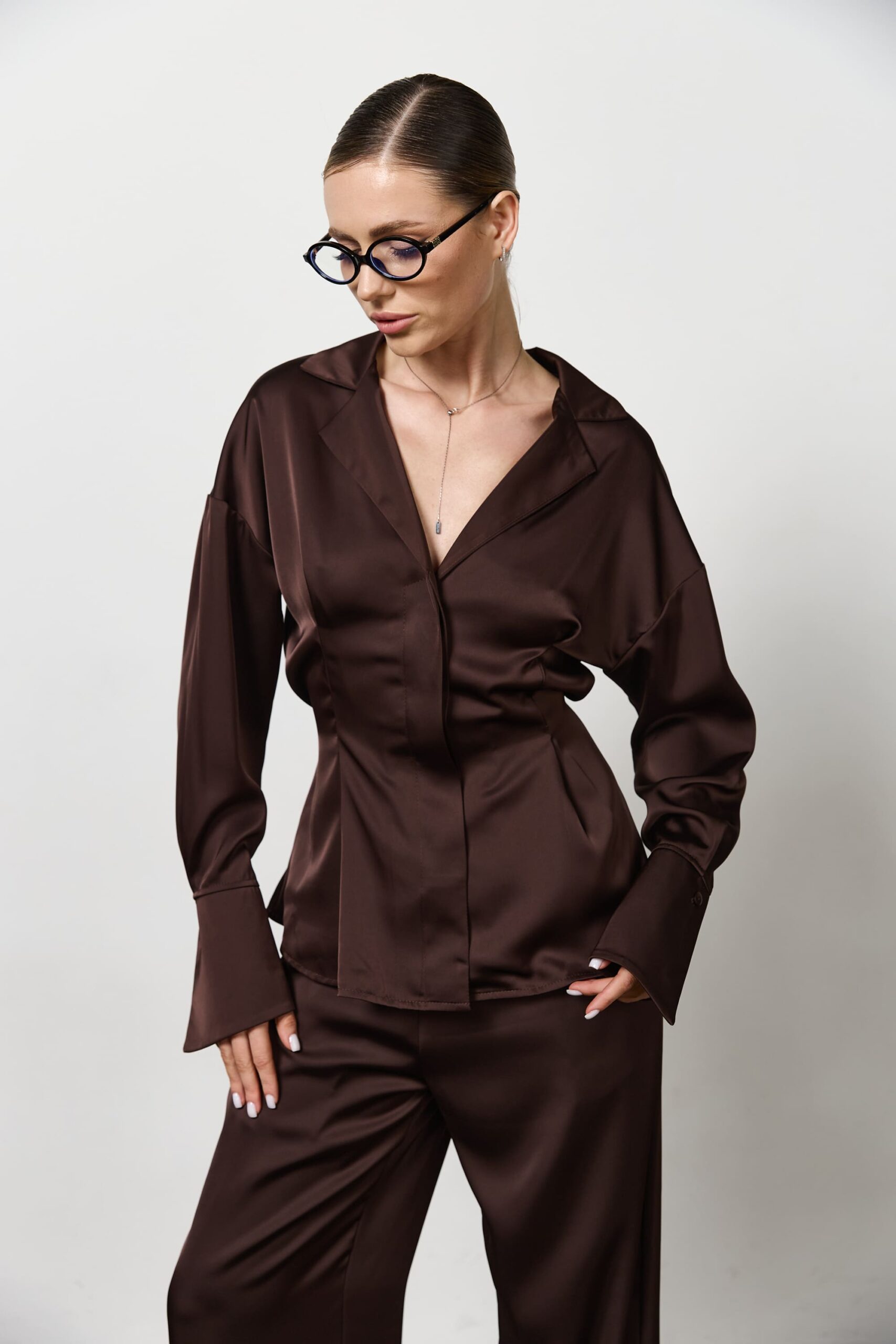 Сорочка сатин приталена на ґудзиках жіноча шоколад за найкращими цінами.