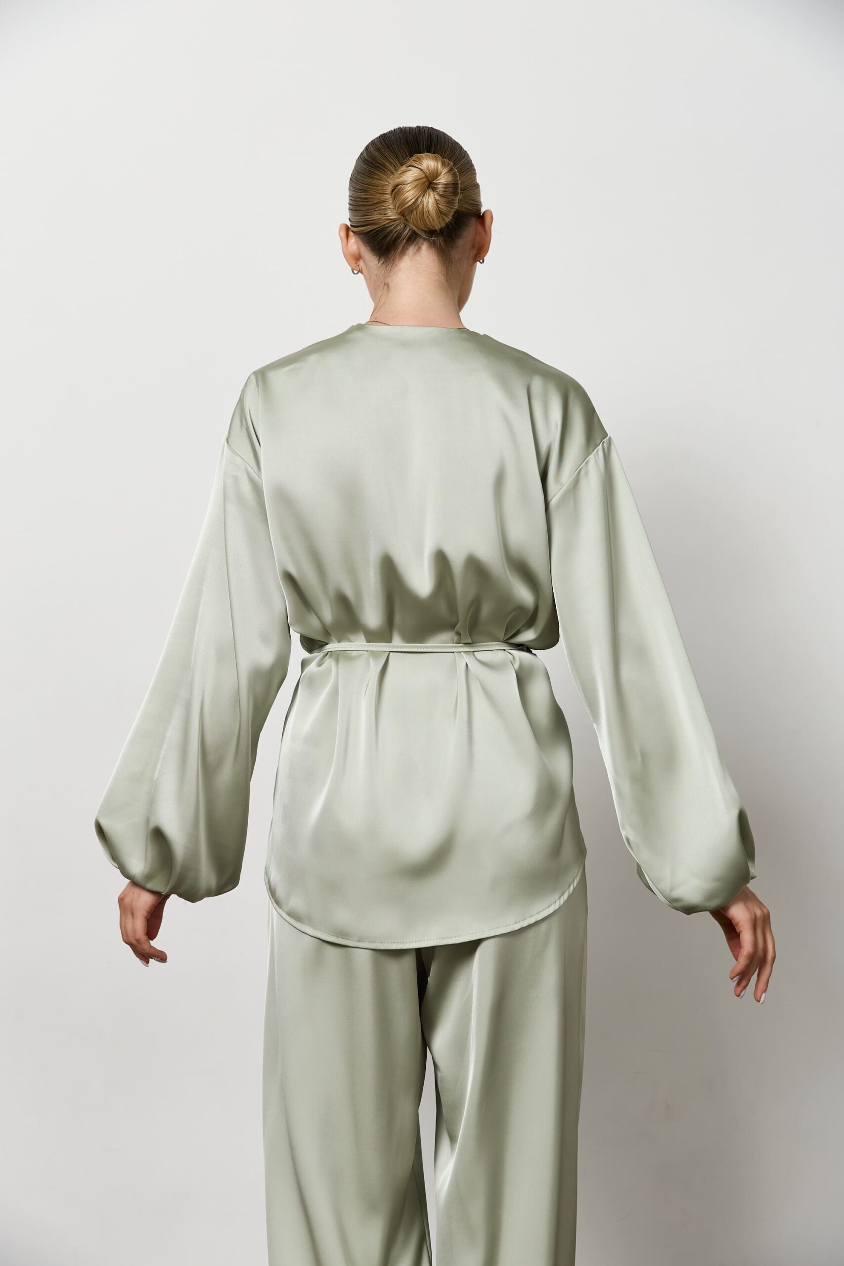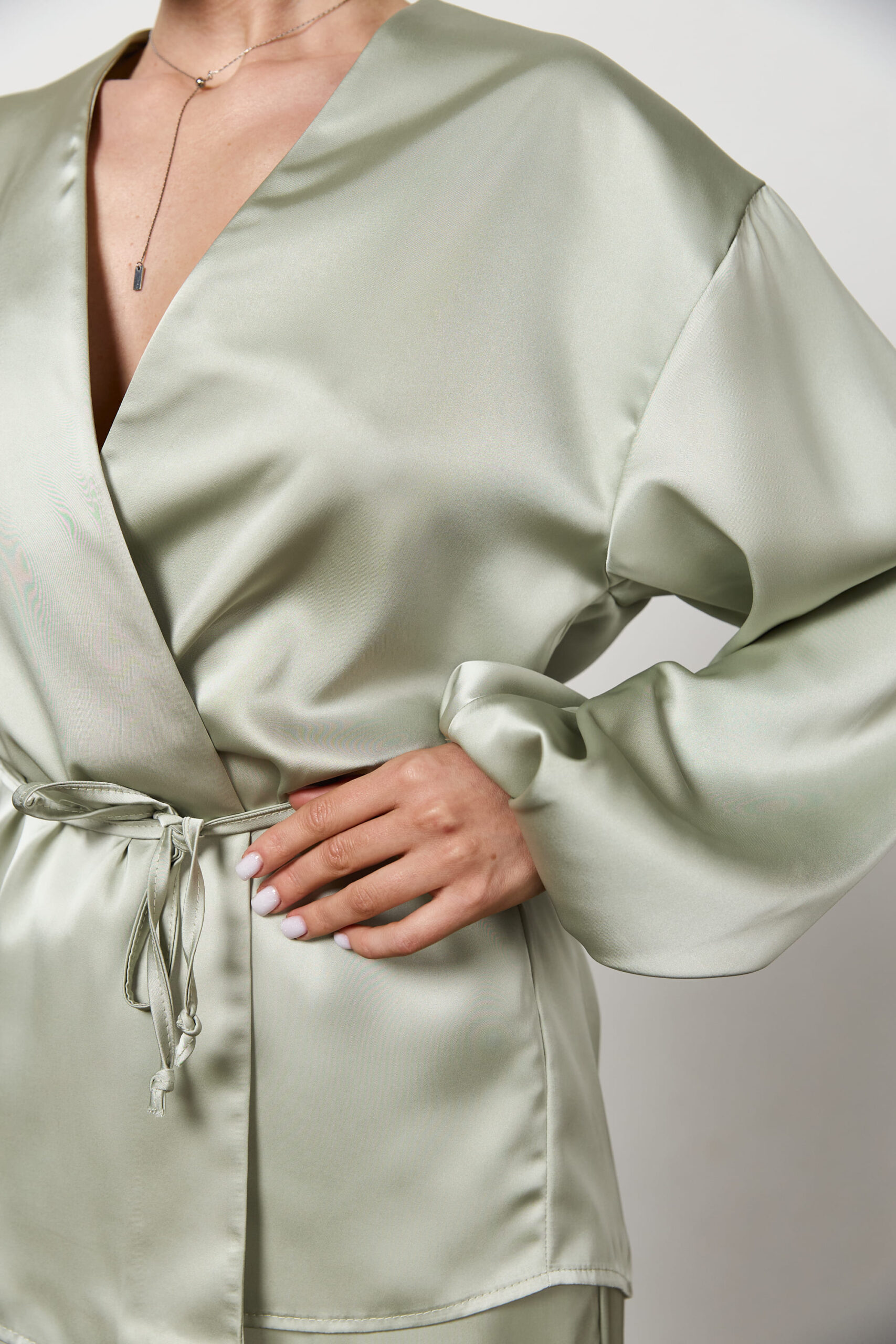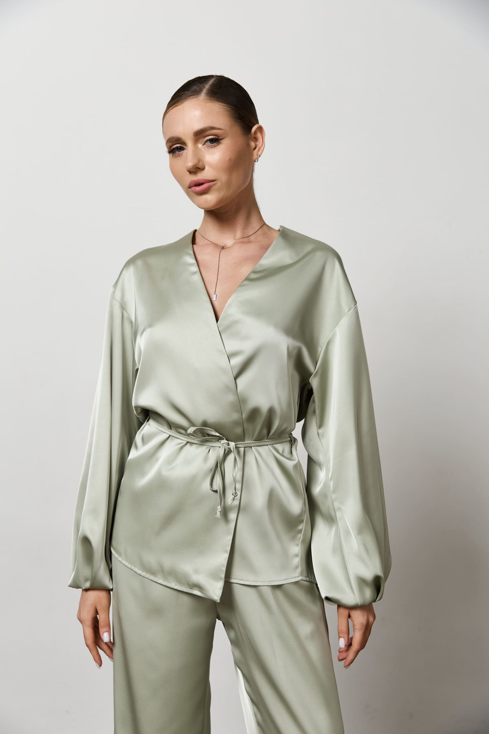 Артикул: Сорочка з поясом сатин жіноча олива Категорії: , , ,
