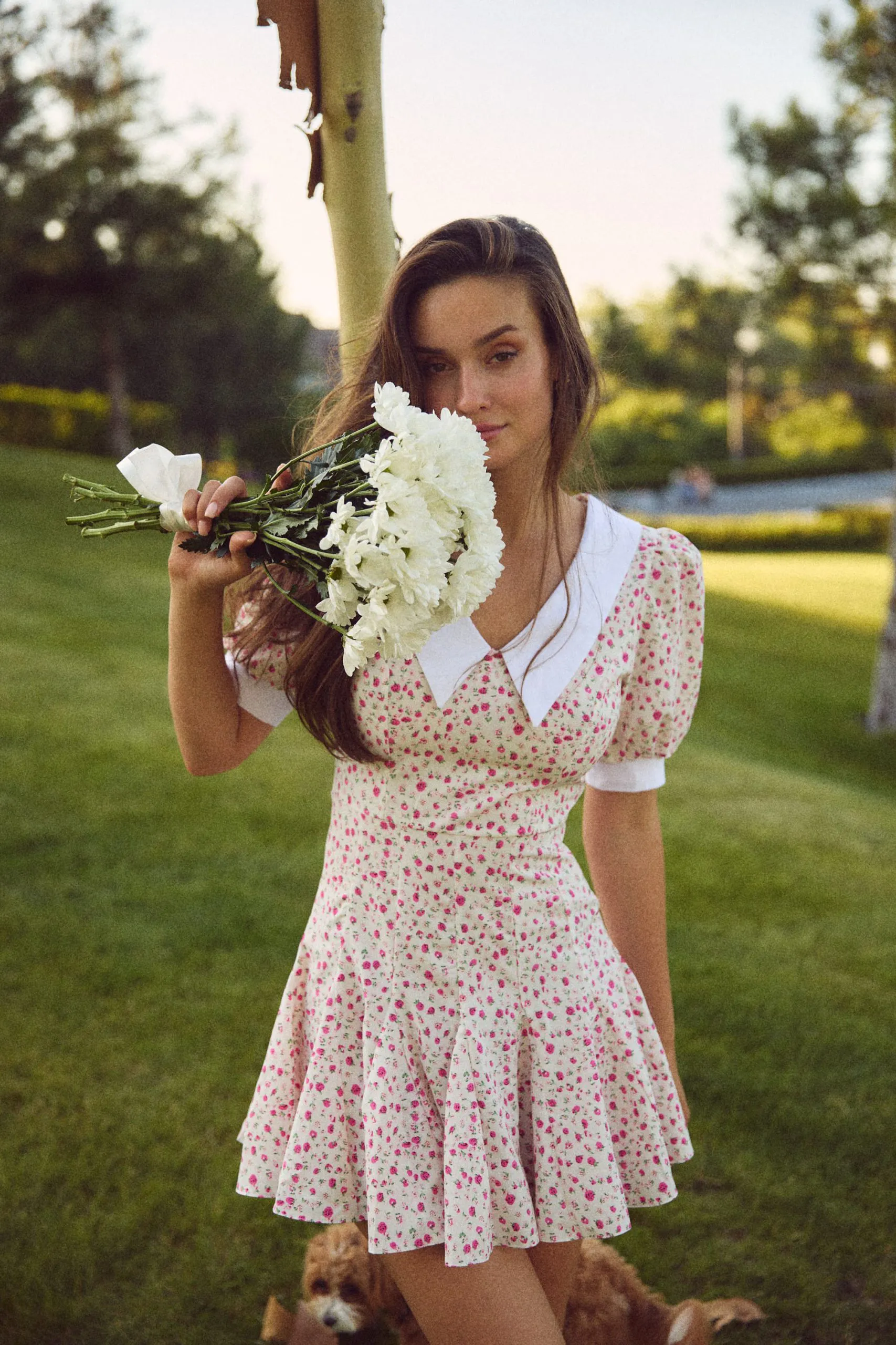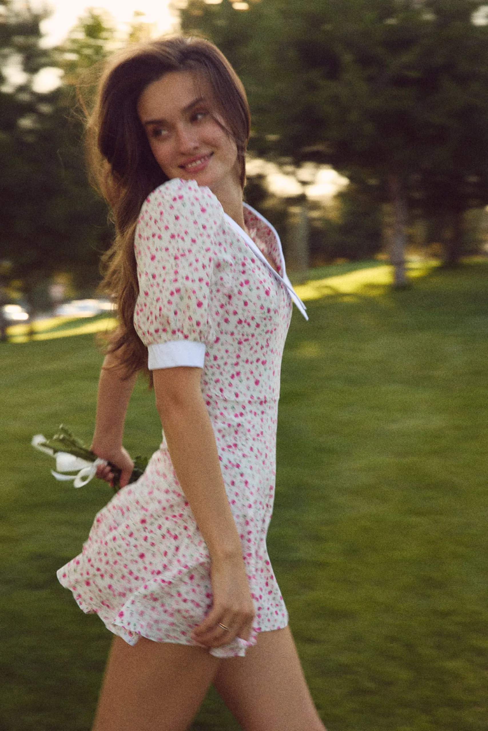 Сукня з комірцем у квіточку молочна за найкращими цінами.