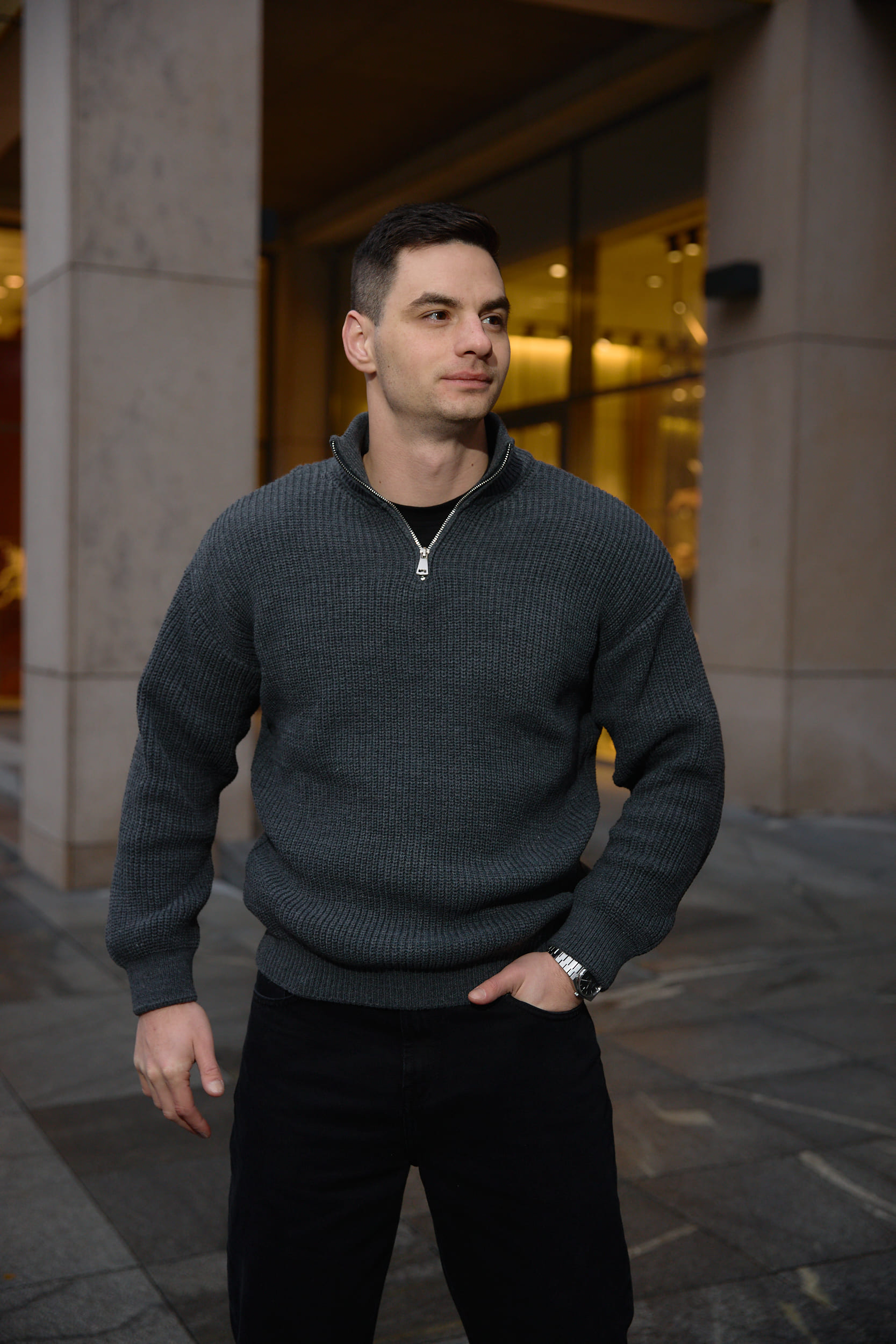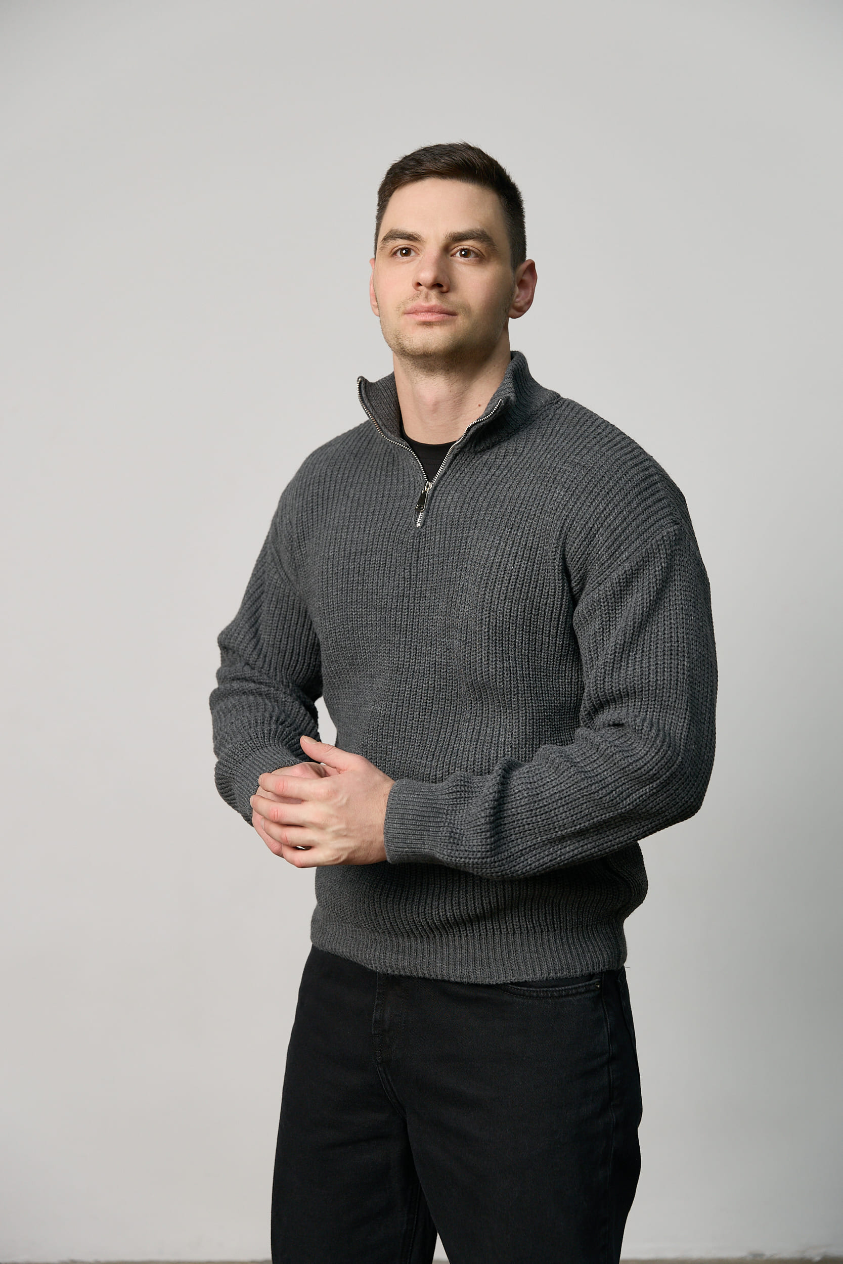 Светр чоловічий на блискавці графіт за вигідними цінами.