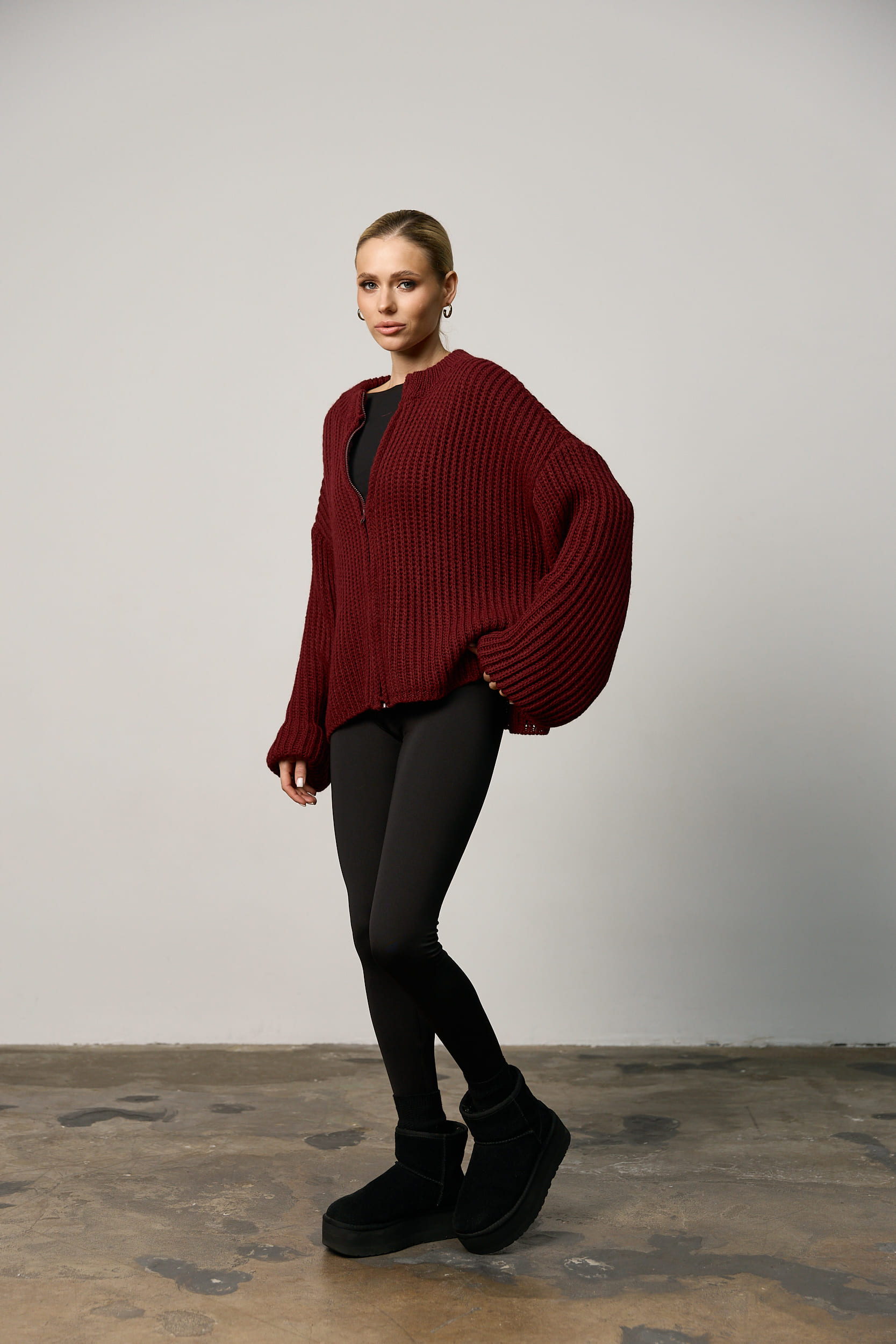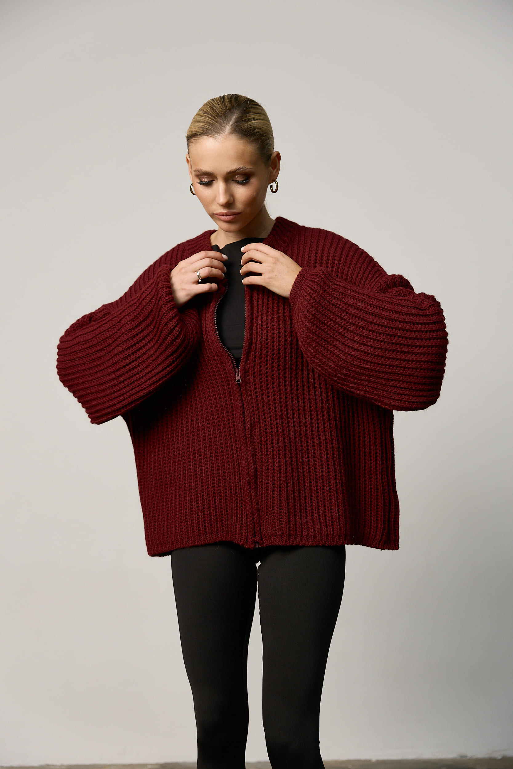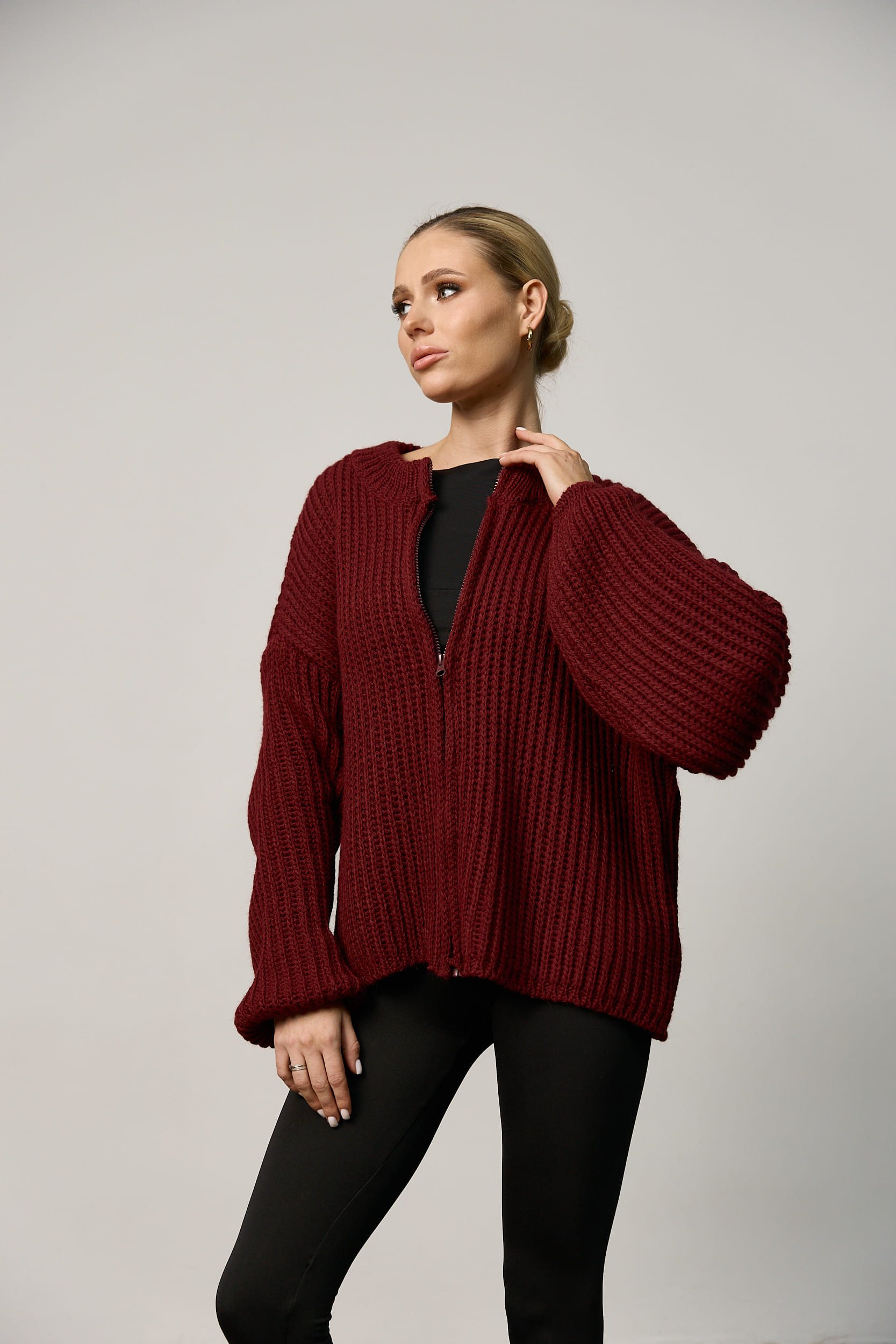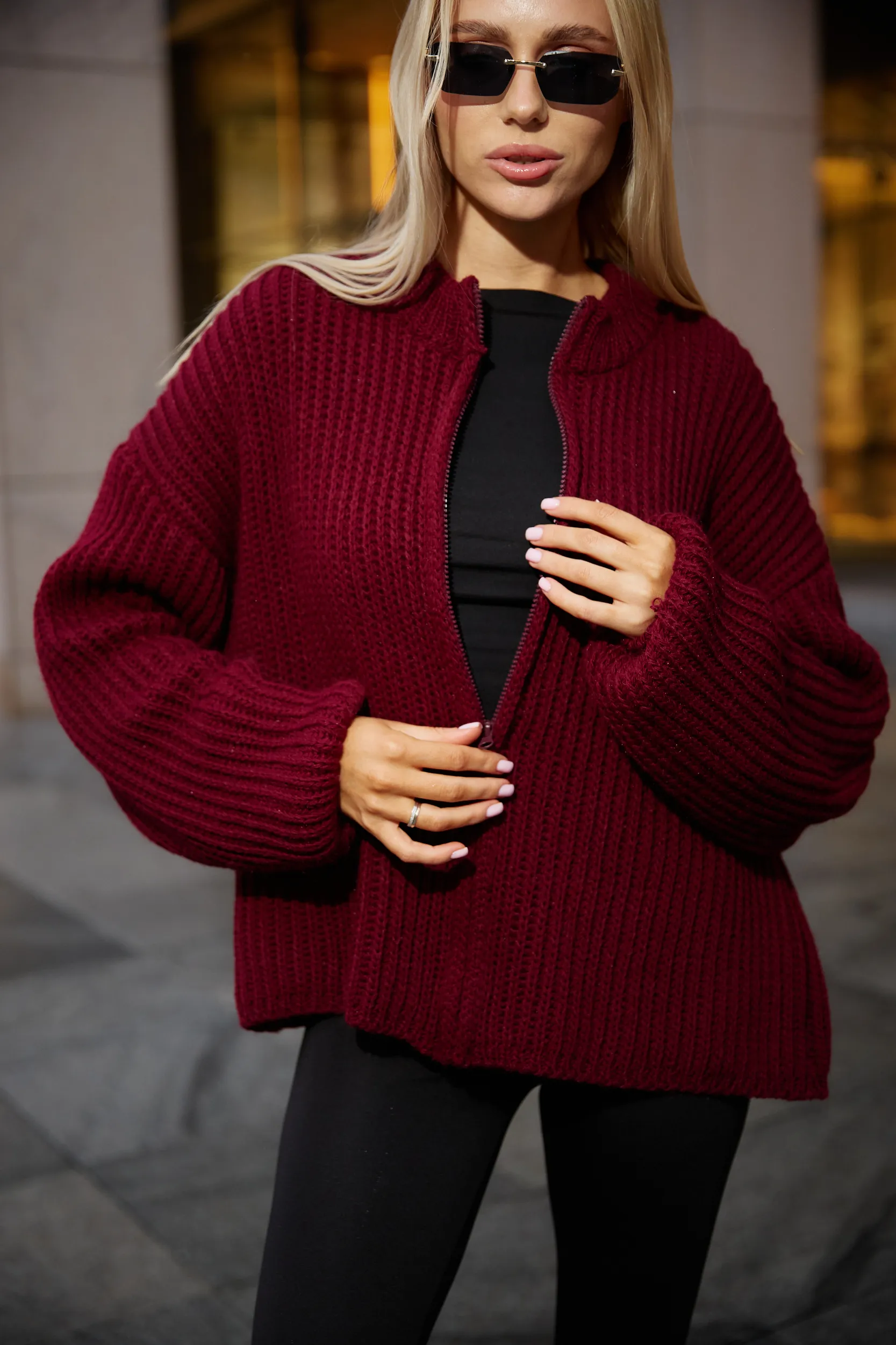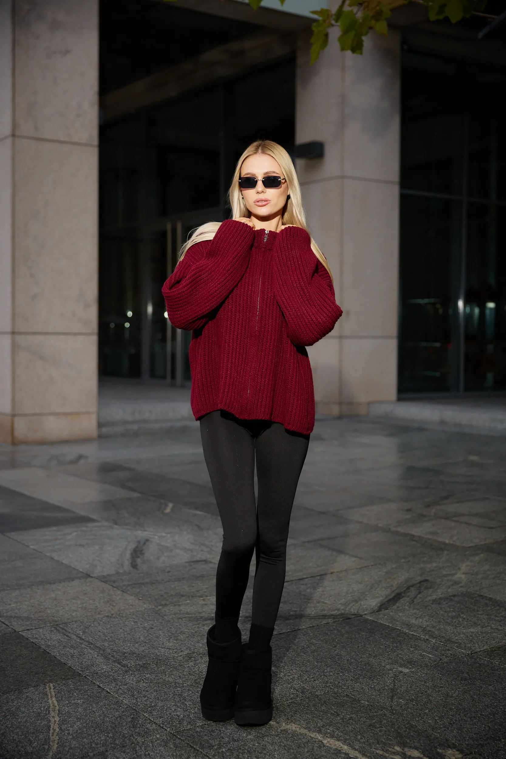Вʼязаний светр oversize на блискавці жіночий бордо за найкращими цінами.