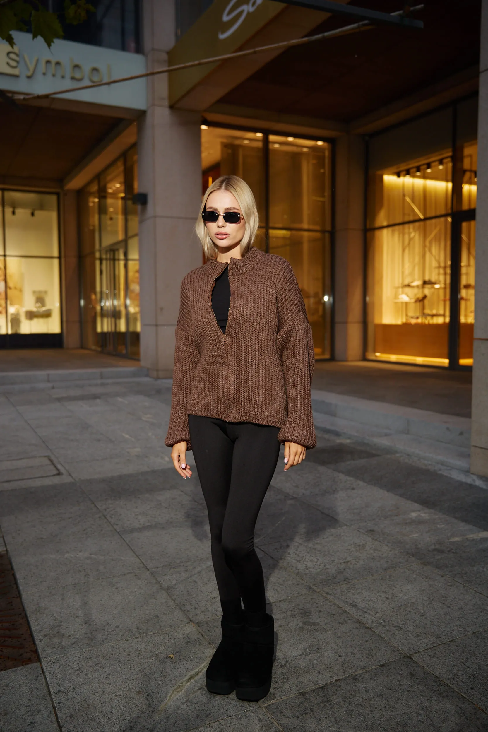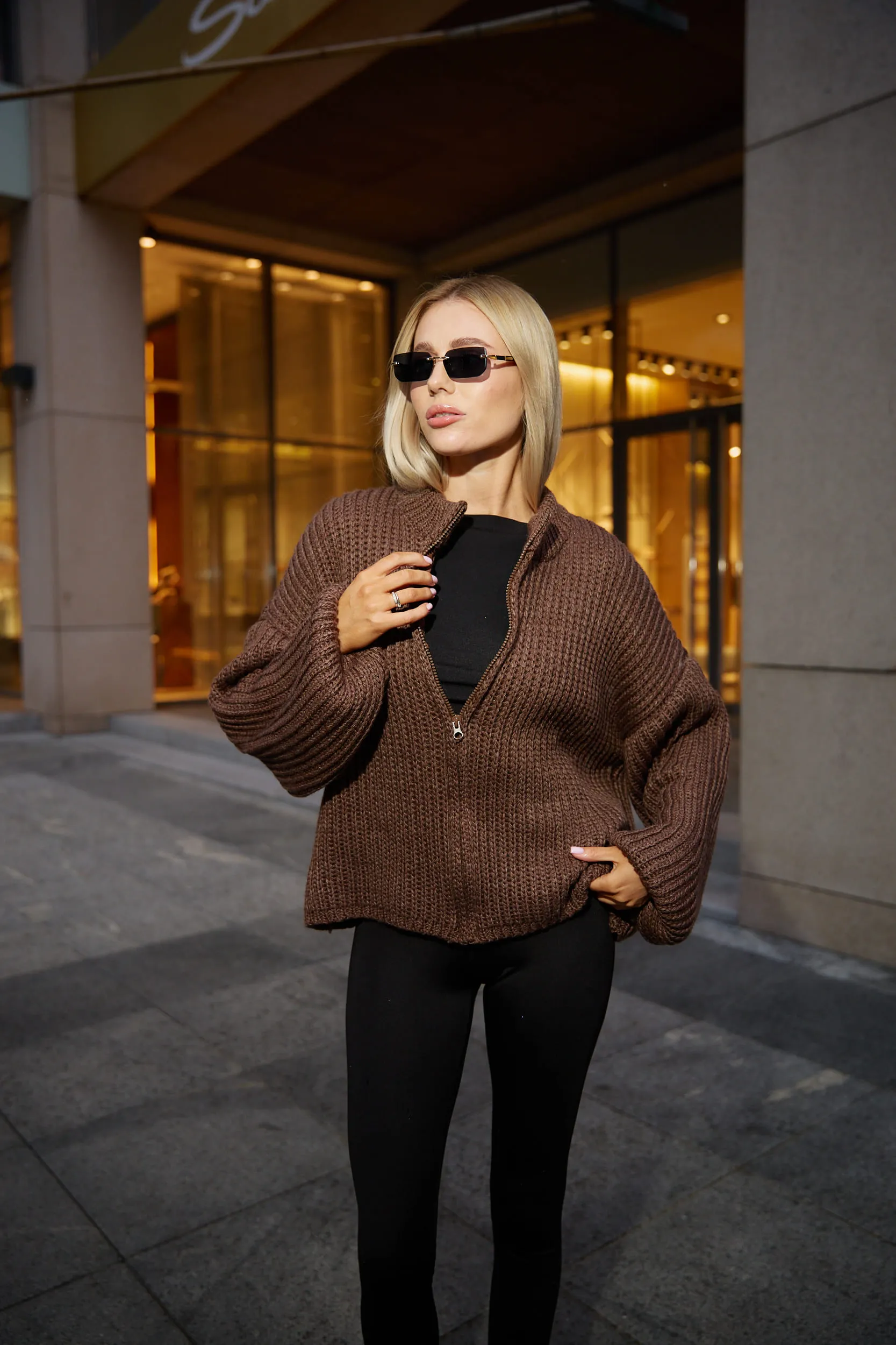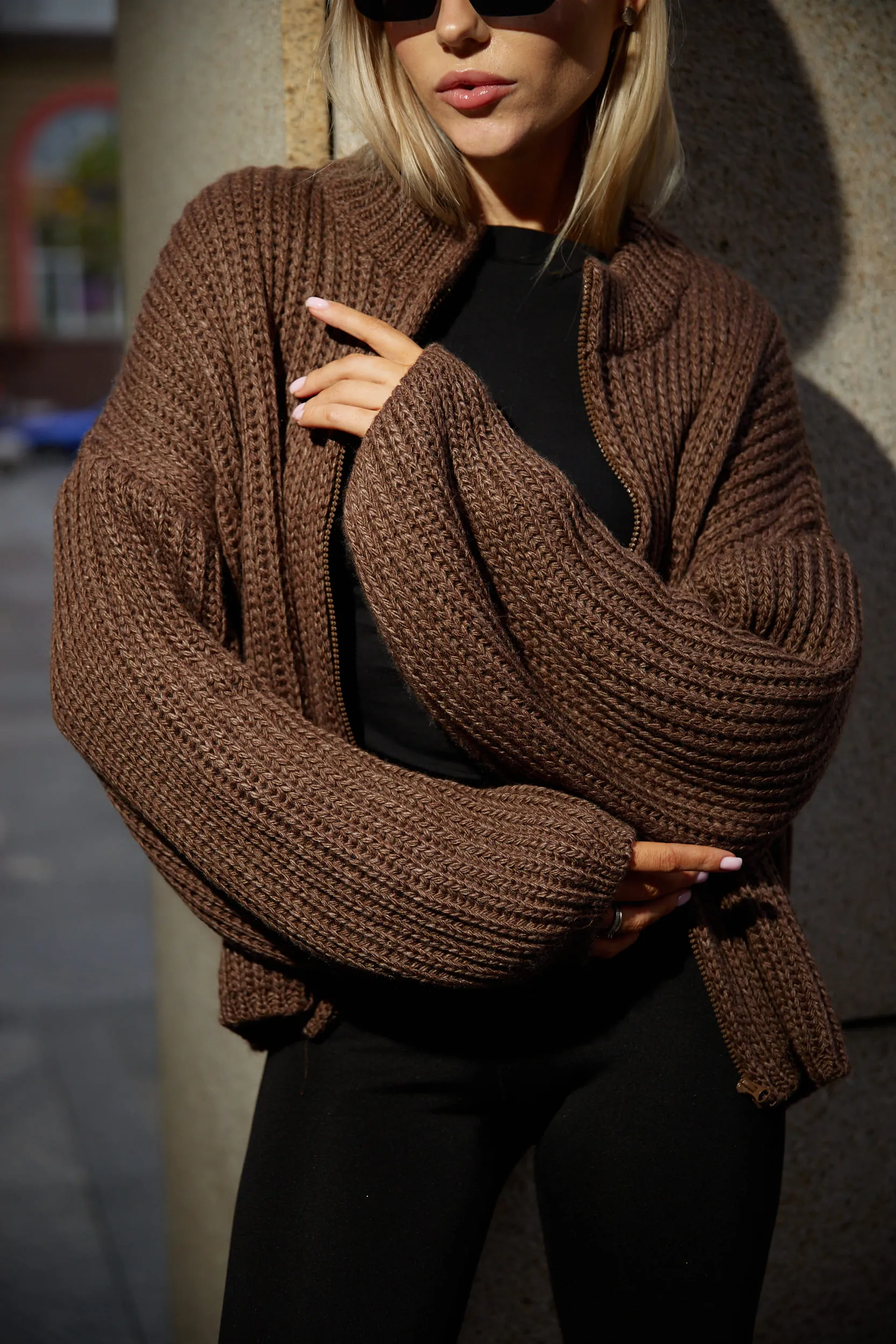 Вʼязаний светр oversize на блискавці жіночий шоколад за вигідними цінами.