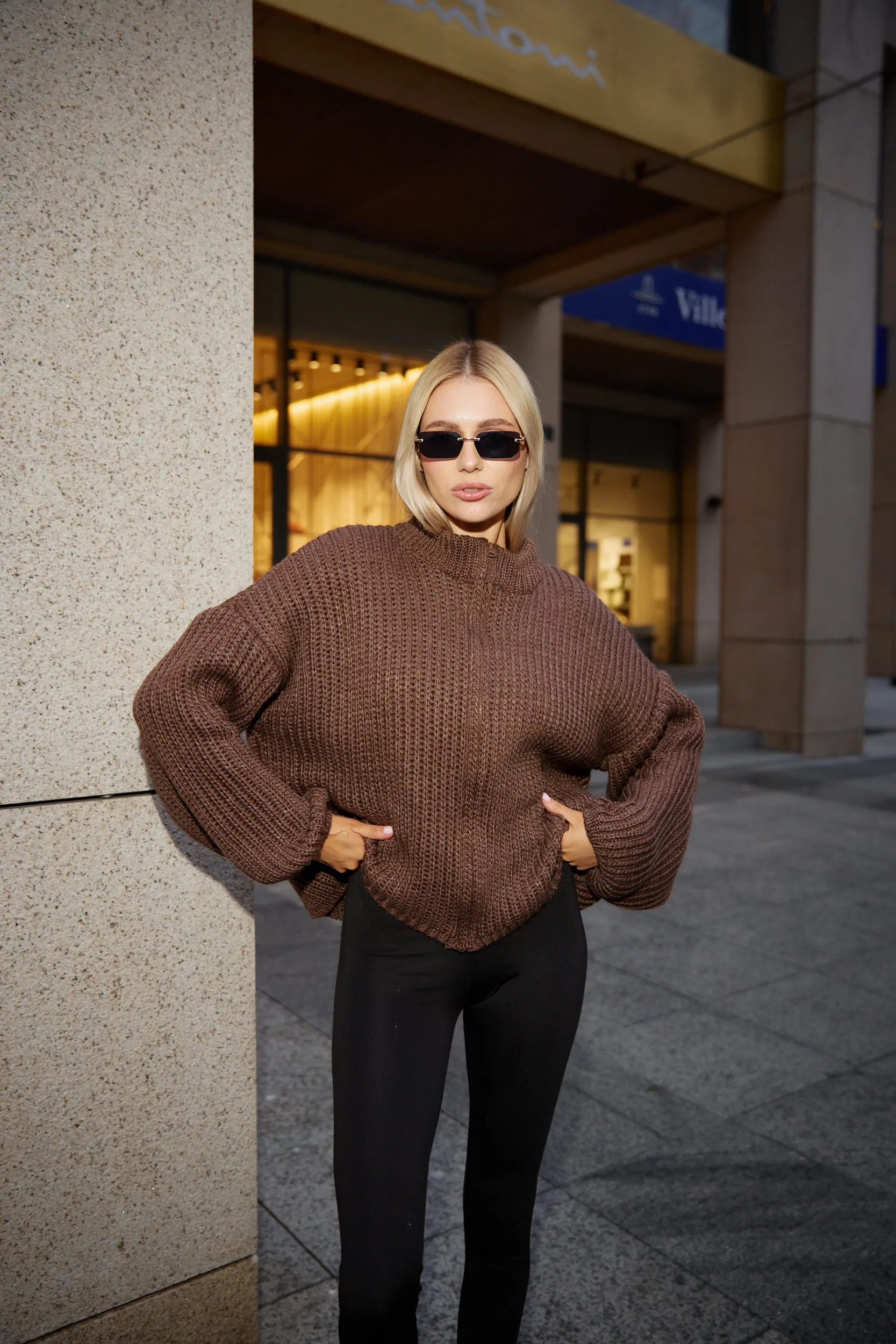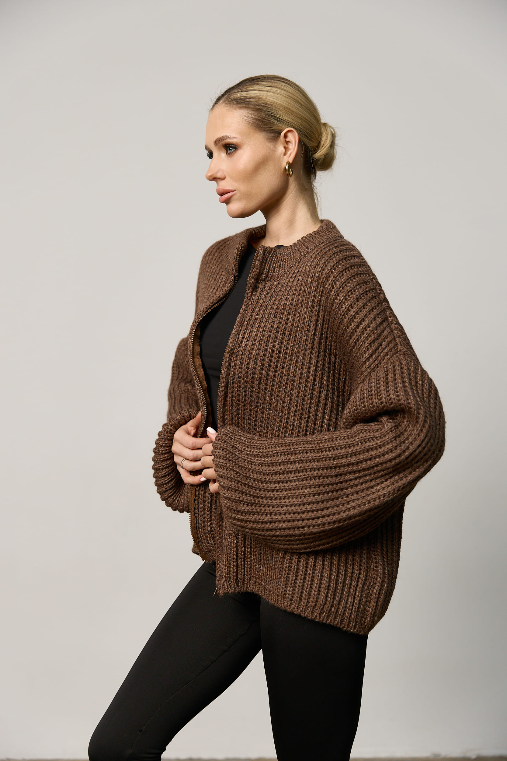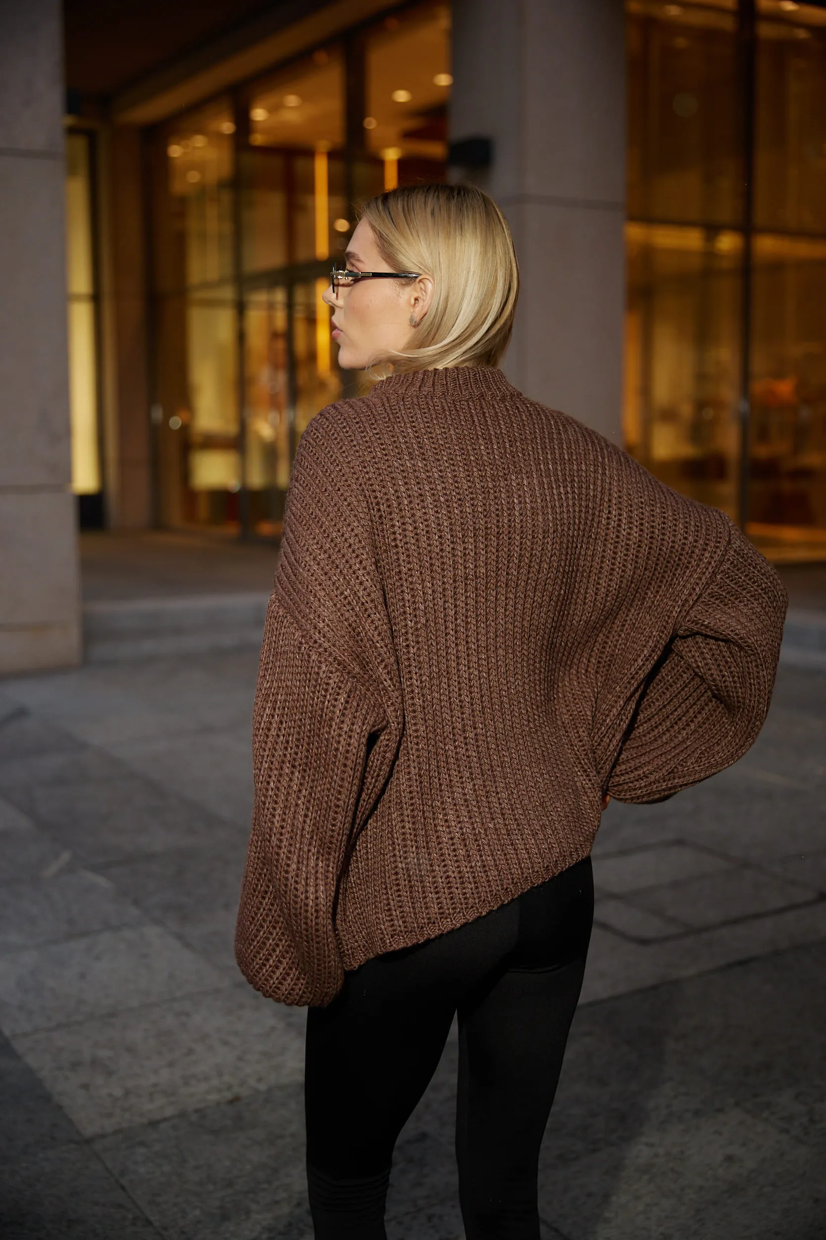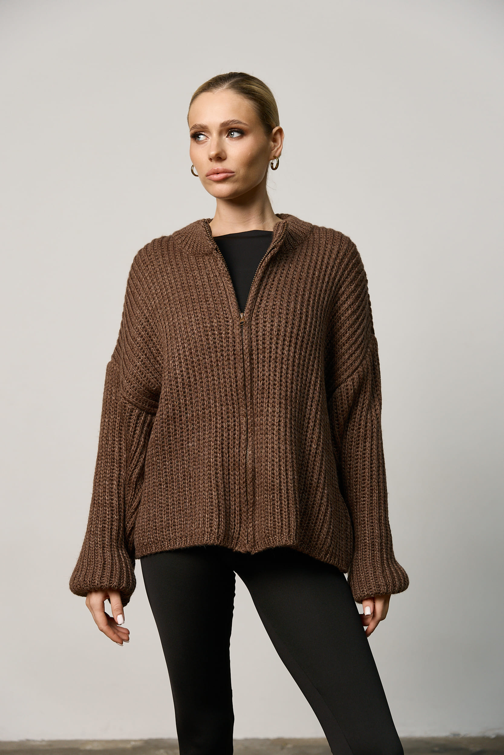 Вʼязаний светр oversize на блискавці жіночий шоколад за вигідними цінами.