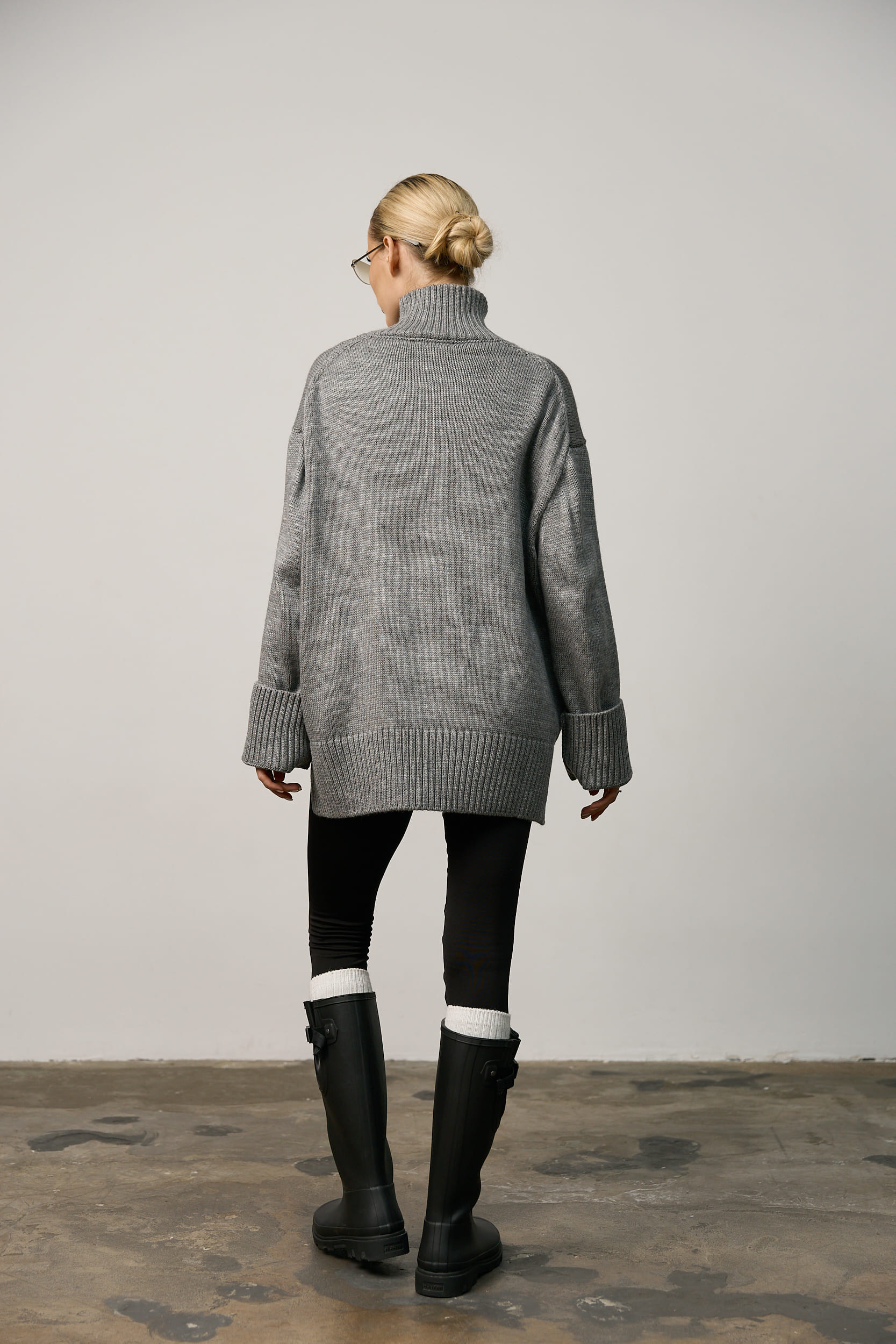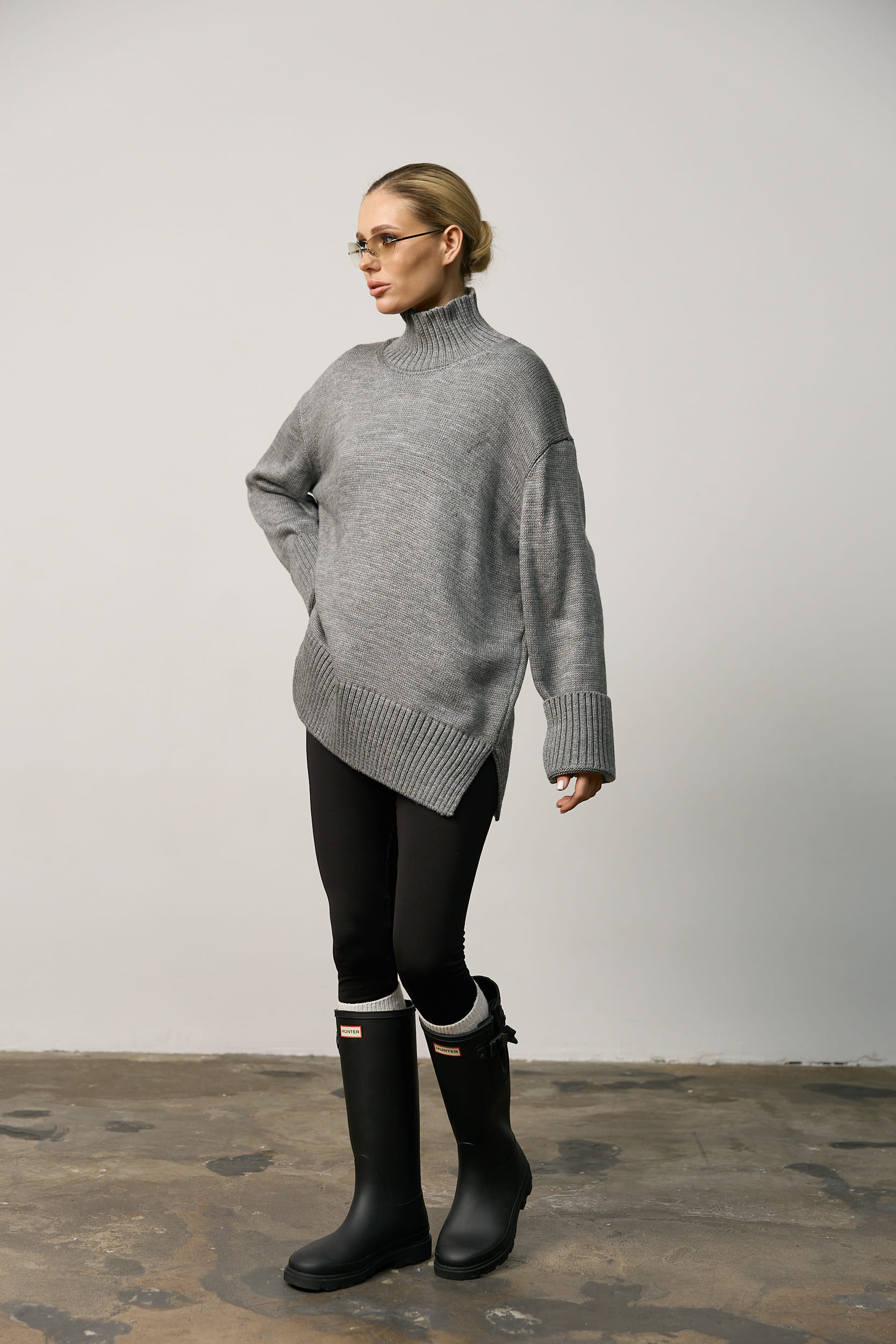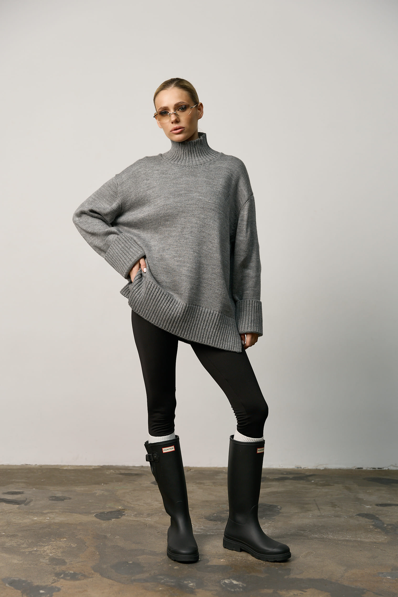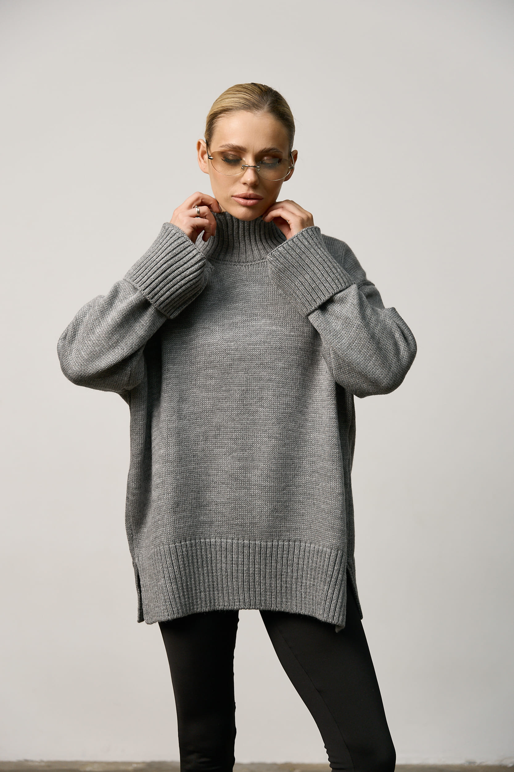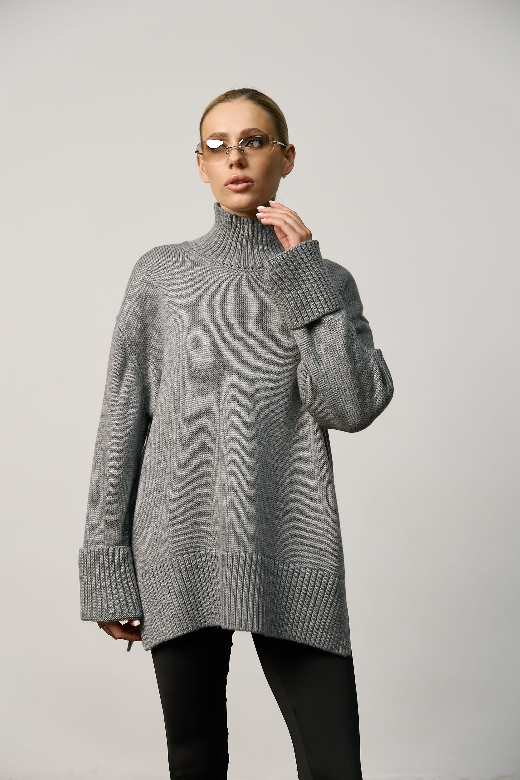 Вʼязаний светр oversize під горло жіночий сірий за найкращими цінами.