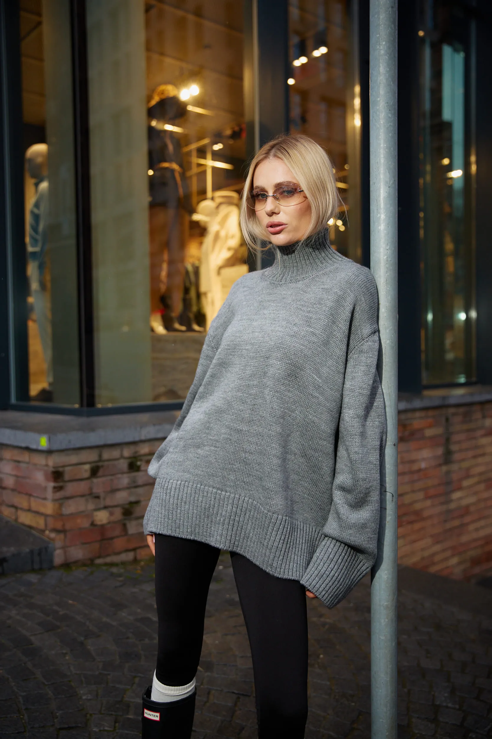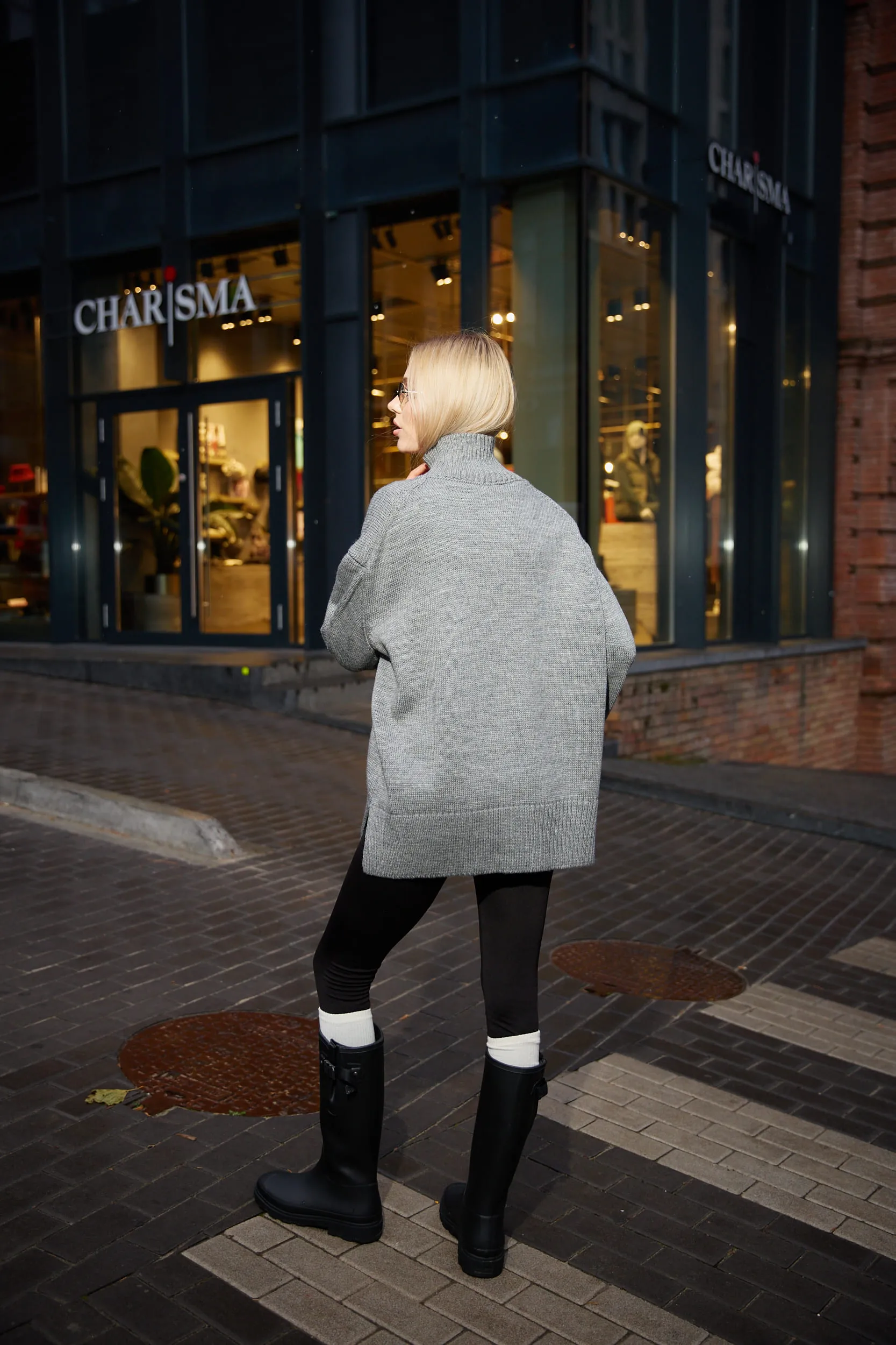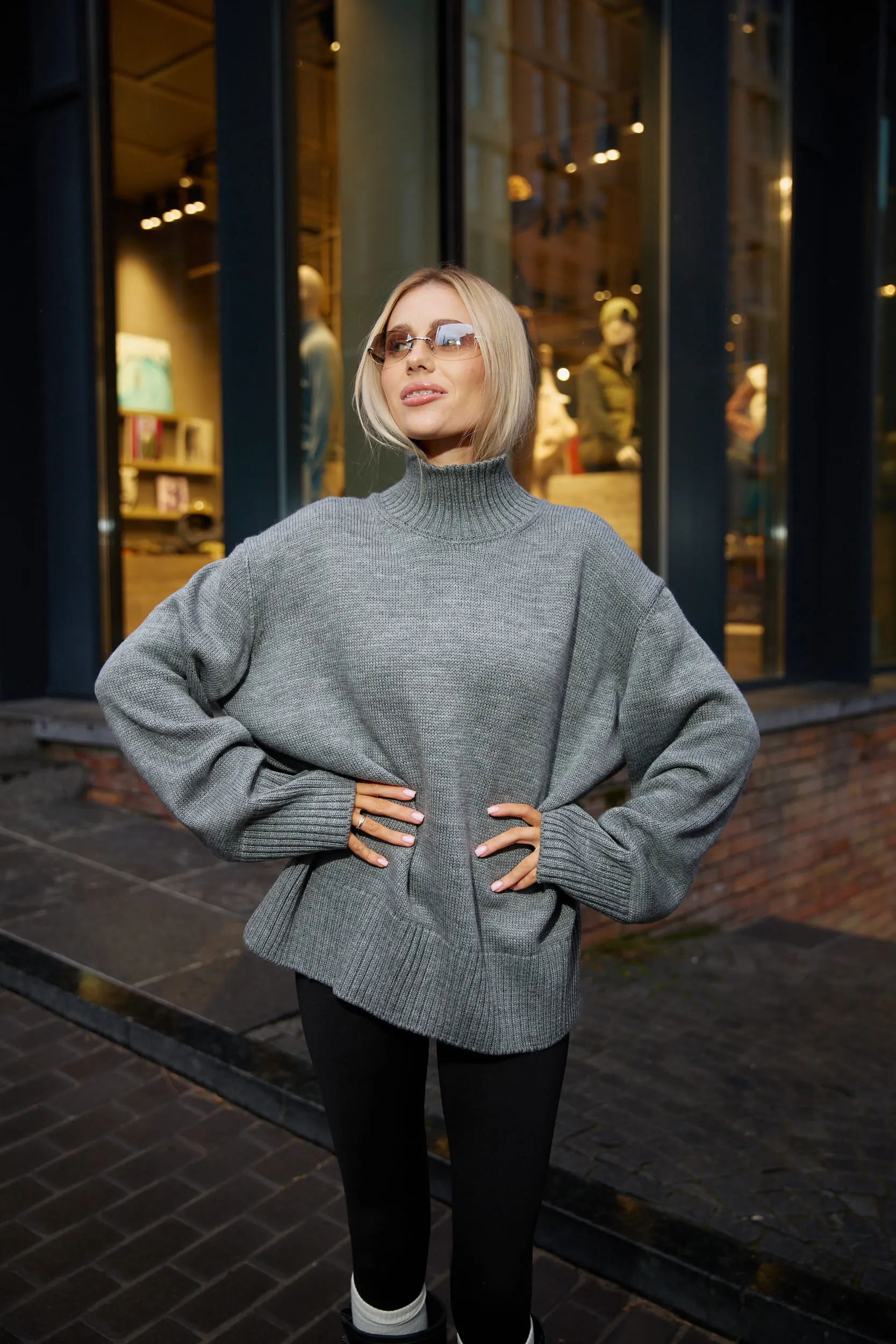 Вʼязаний светр oversize під горло жіночий сірий за найкращими цінами.