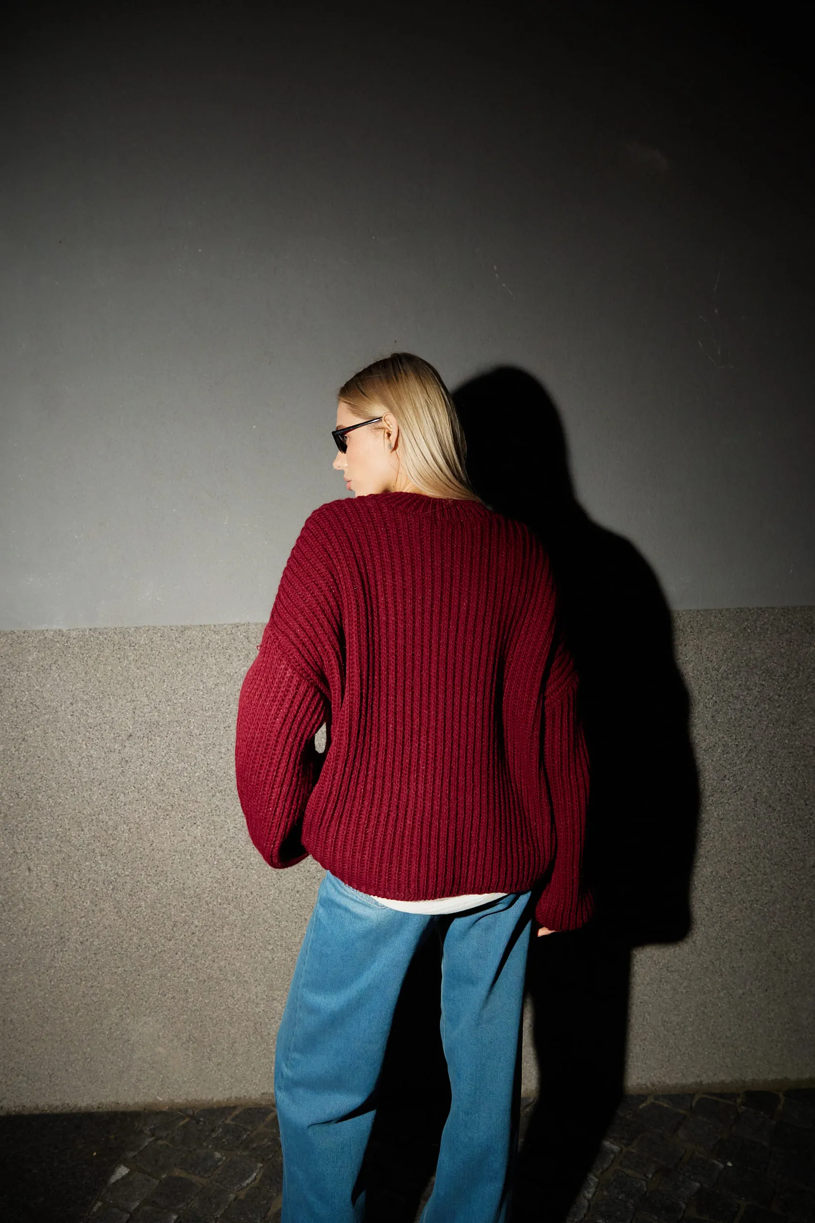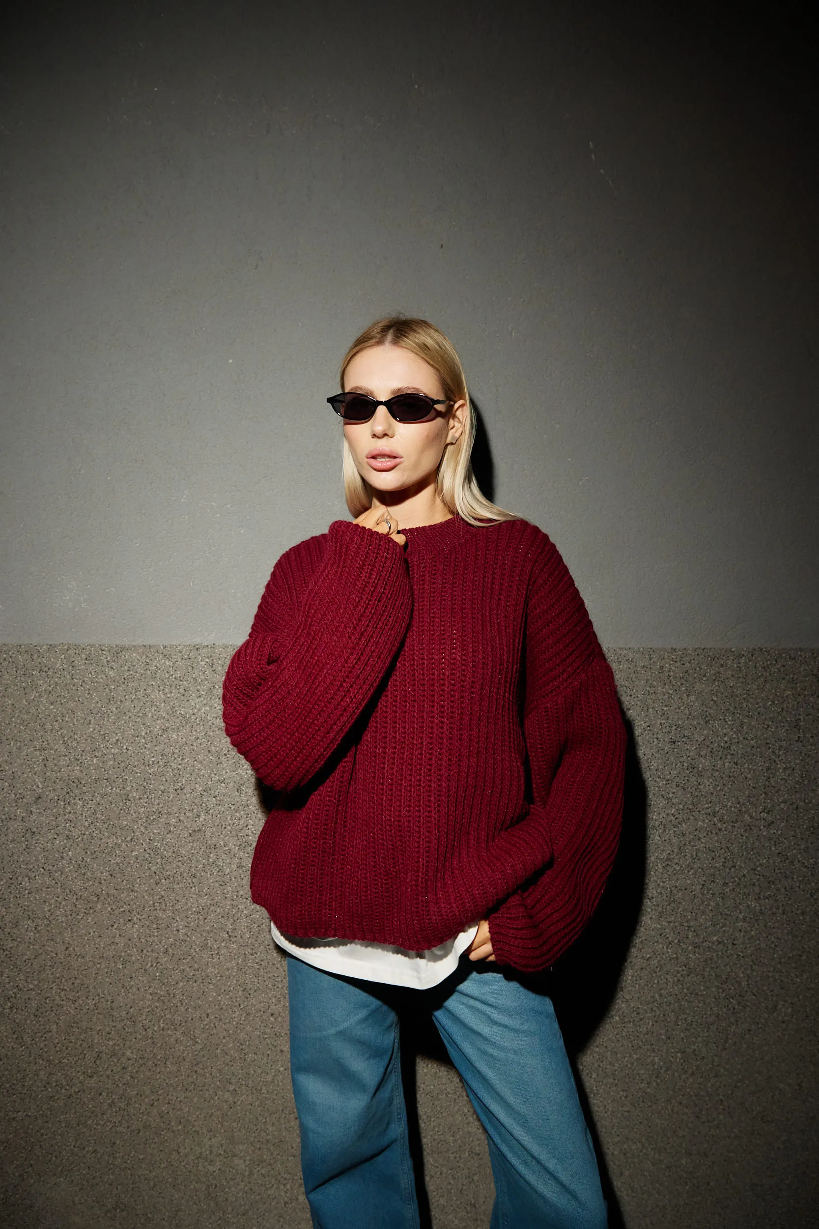 Вʼязаний светр oversize жіночий бордо за найкращими цінами.